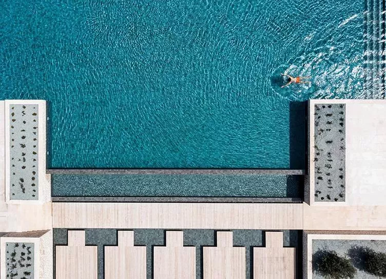 На огромной территории (580 тыс. кв. м) выбирайте для проживания между обычным номером, сьютом с собственным подогреваемым бассейном или трехэтажной виллой с бассейном, террасой, 7 спальнями и зоной для барбекю. Почти все номера выходят окнами на море, а усиливает морскую тему дополнительная дизайнерская фишка – круглое окно-иллюминатор в ванной комнате.
