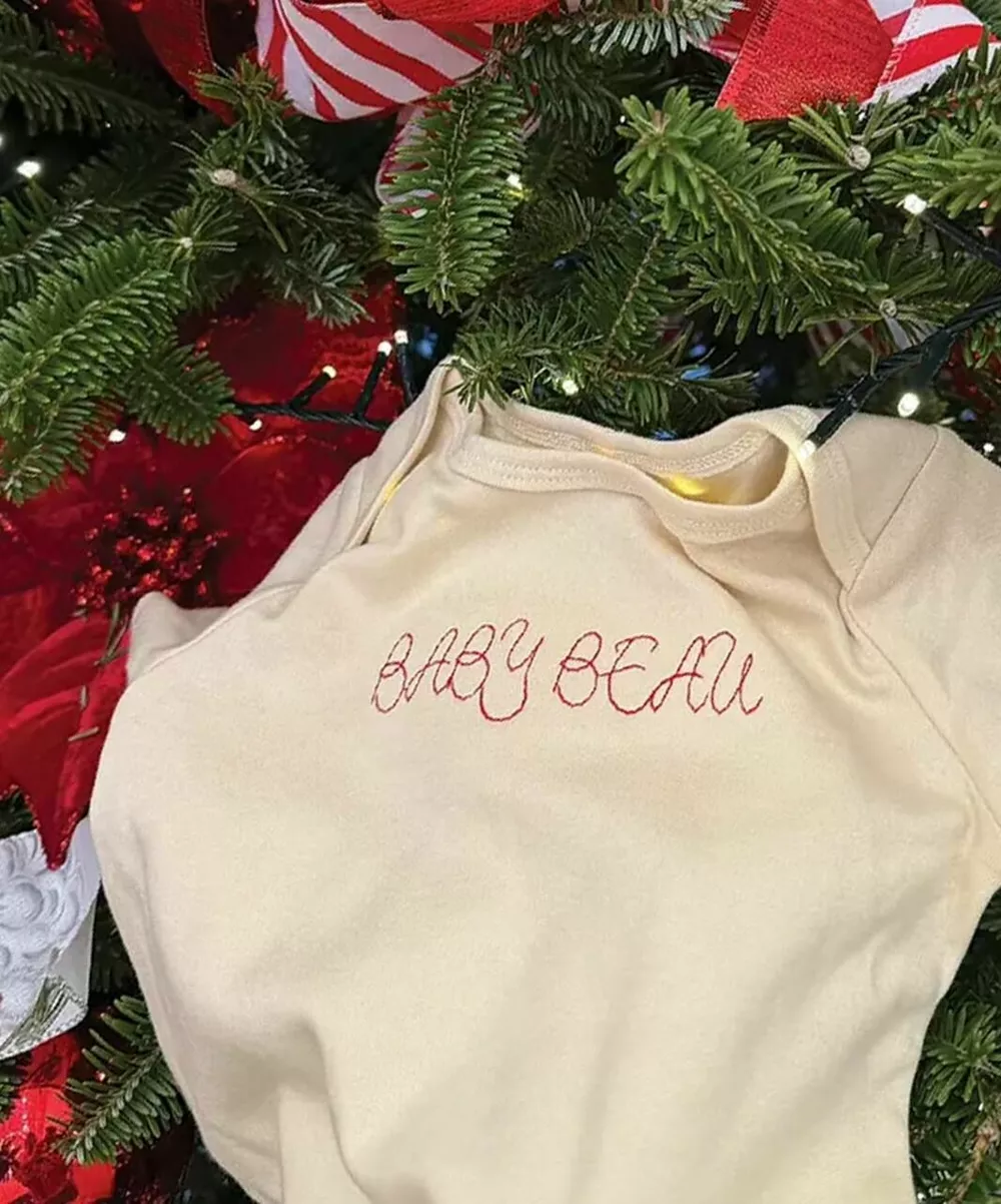 Кстати, вышивка на комбинезоне позволила фанатам предполагать, что звездные родители назовут малыша именем Бо.