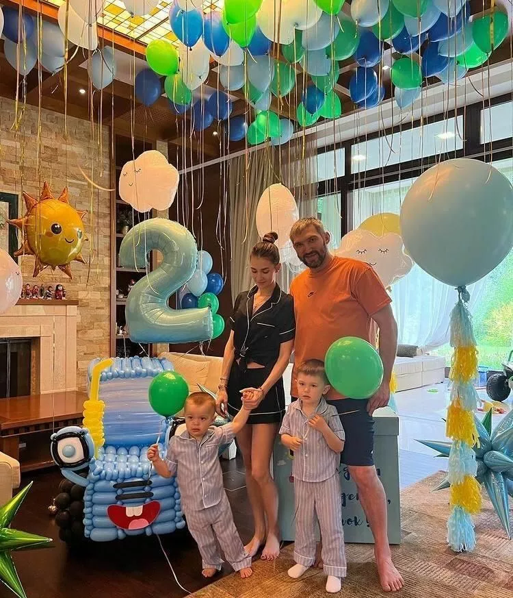 27 мая назад в семье прославленного хоккеиста Александра Овечкина и его супруги Настасии Шубской родился второй ребенок - в американской клинике супруга спортсмена родила мальчика, которого родители назвали Ильей. В этом году мальчику исполнилось два года. И без традиционного снимка по этому случаю, конечно не обошлось. В соцсетях Настасия опубликовала фото, на котором запечатлена вся семья. В кадре именинник вместе с братом, 3-летним Сергеем, родителями и собакой стоит на фоне украшенной шарами комнаты. Все еще в пижамах и, очевидно, в предвкушении вечернего празднования.