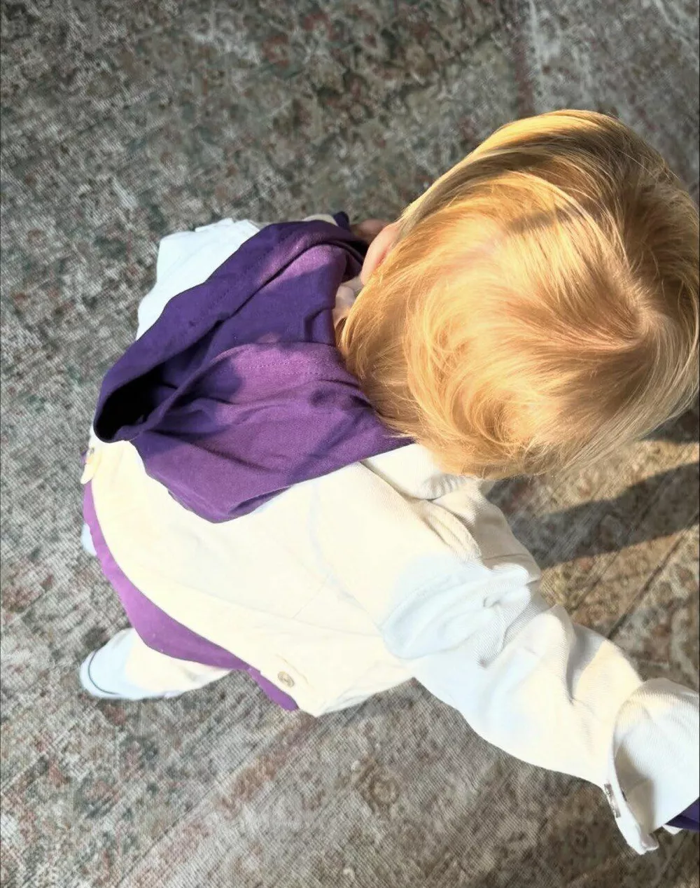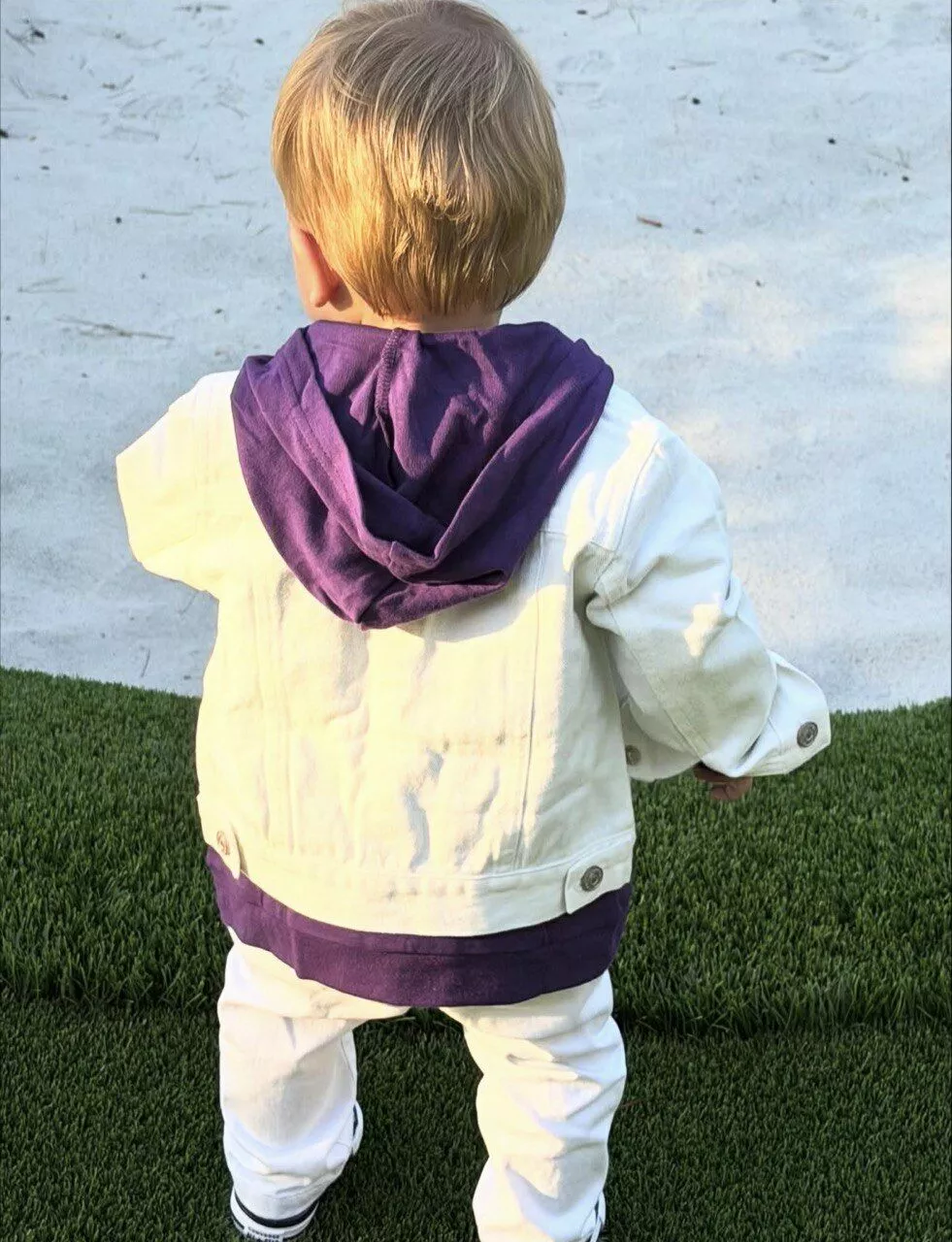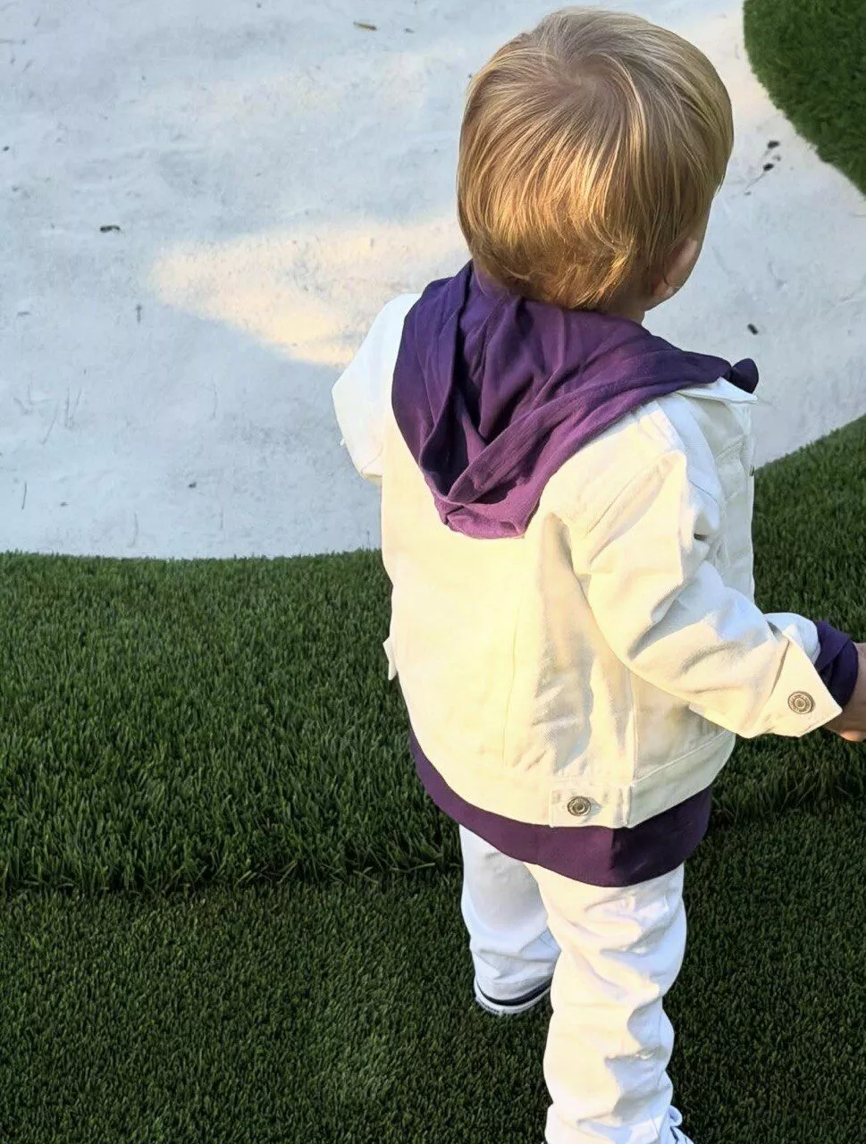 Сын Джастина Бибера, которому августе этого года исполнился год, пошел в своего отца. Если и не глазами (лицо мальчика звездные родители до сих пор так и не показали общественности), то точно чувством стиля. Накануне Хейли опубликовала в своем профиле в соцсетях серию свежих снимков Джека Блюза. Светловолосый малыш, снятый, разумеется, со спины запечатлен во время прогулки. На нем белые джинсы и джинсовка. А под ней - фиолетовая толстовка.