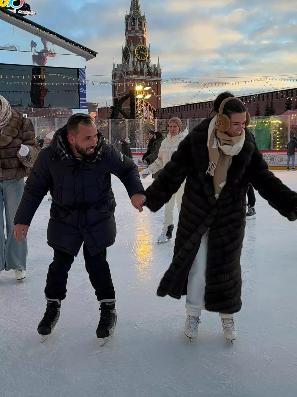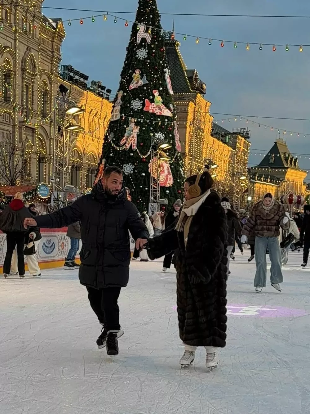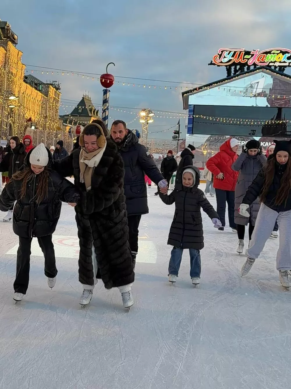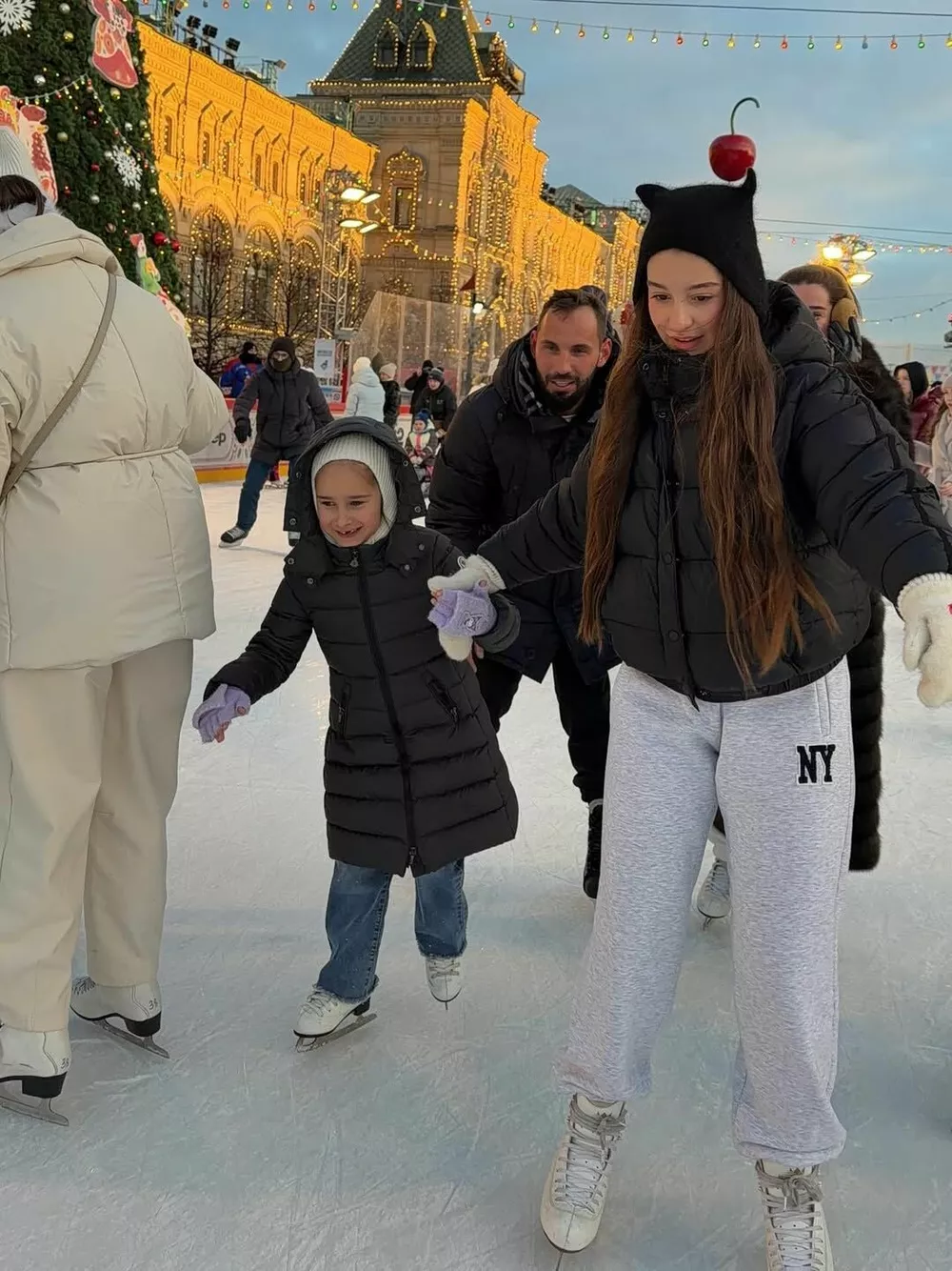 И эти традиции стабильно включают семейный поход на каток на Красной площади в самом сердце Москвы. Действительно, более сказочное место в столице в предновогодний период трудно себе вообразить. В этом году семейство не стало изменять привычкам и вновь выбралось в центр города, чтобы своими глазами увидеть, как городские службы украсили к праздникам окрестности Кремля.