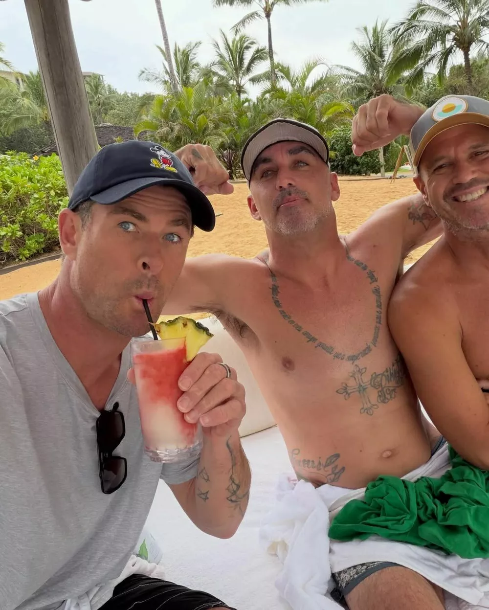 Семейство Криса Хемсворта на постоянной основе проживает в городе Байрон-Бей, Австралия, идеальном месте для поддержания активного образа жизни. И учит своих 12-летних сыновей-близнецов Сашу и Тристана кататься на серфе, покоряя капризные океанические волны. На днях они с сыновьями мужской компанией отправились на побережье, о чем Крис отчитался новыми фотографиями с мальчиками в своем личном блоге.