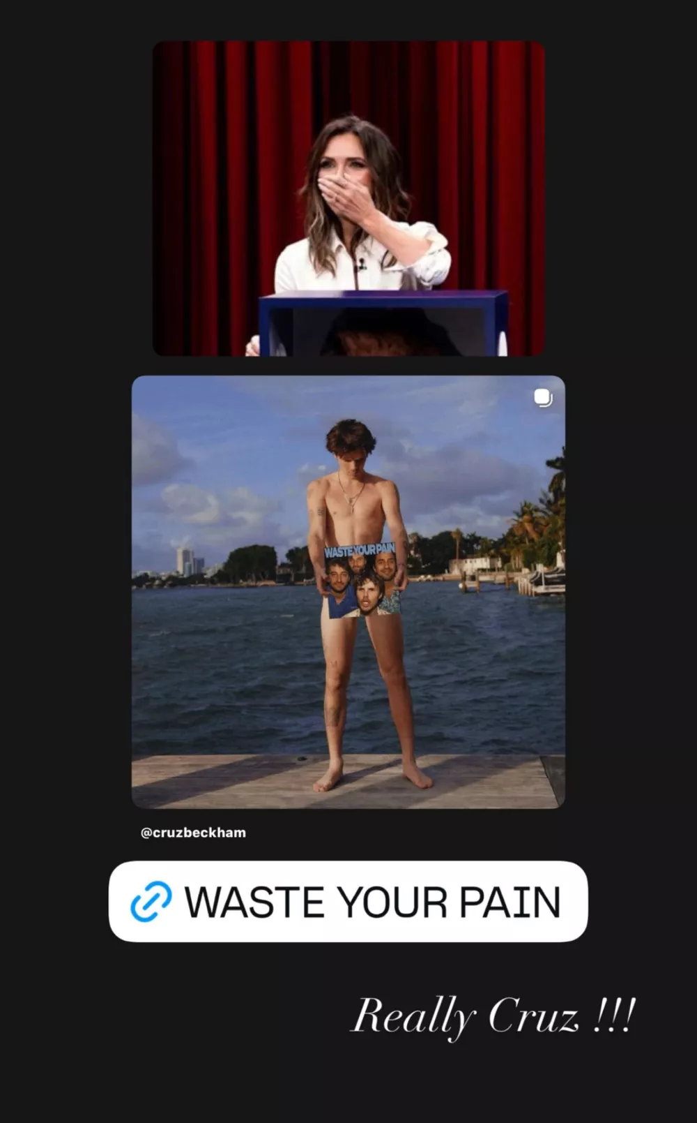 Нужный эффект был достигнут - пост собрал тысячи лайков и сотни комментариев. И сердечки от Виктории Бекхэм, разумеется, были в их числе, хотя и методы сына по продвижению своей музыкальной карьеры она и не одобрила. Виктория репостнула фото Круза в свои сторис, добавив к нему собственное фото с шокированным выражением лица и подписью: “Серьезно, Круз!!!”