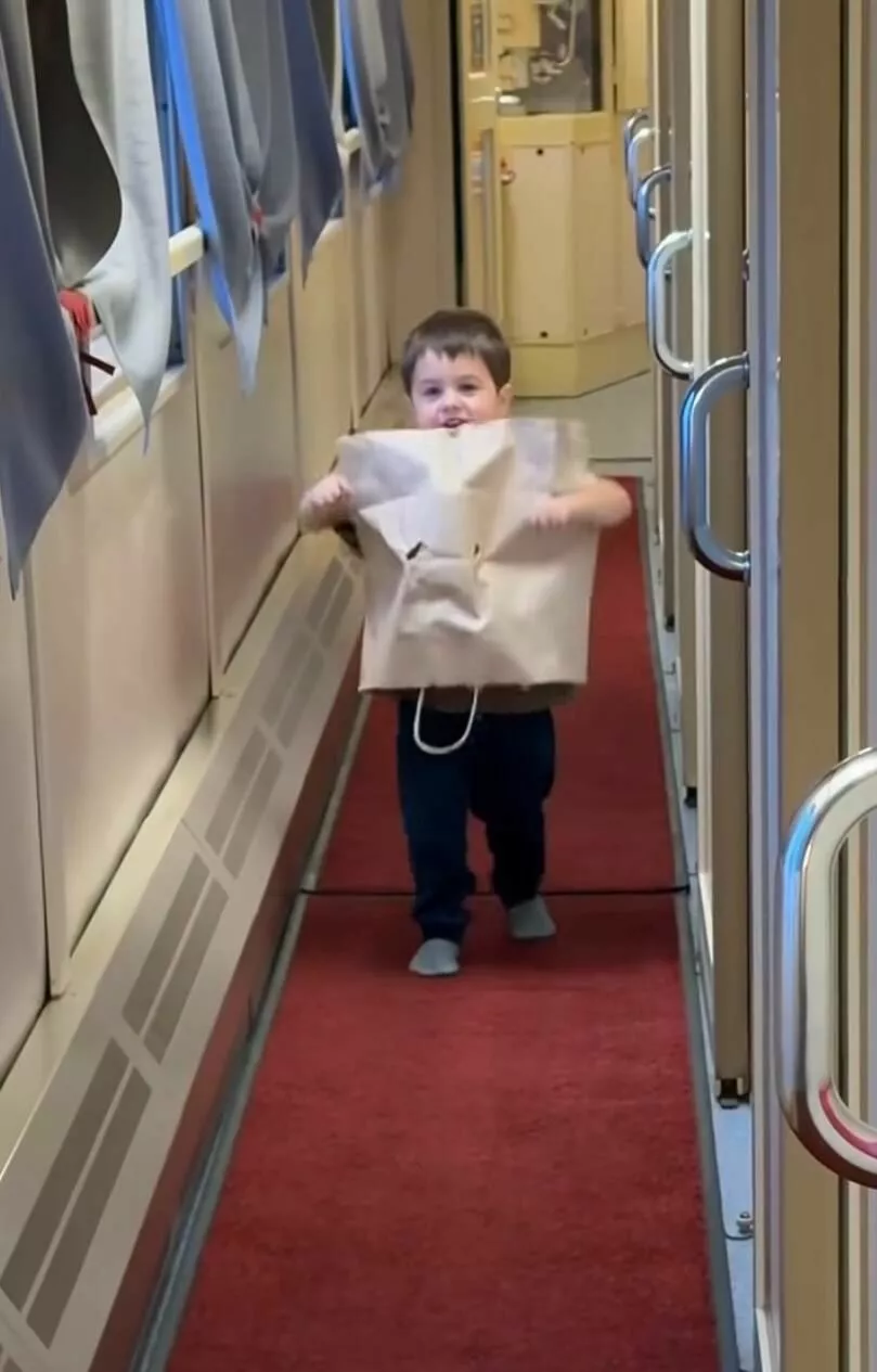 Прилучный выложил в своем личном блоге забавное видео, где именинник, смеясь, бегает по вагону поезда, завернувшись в бумажный крафт-пакет в качестве праздничного наряда.