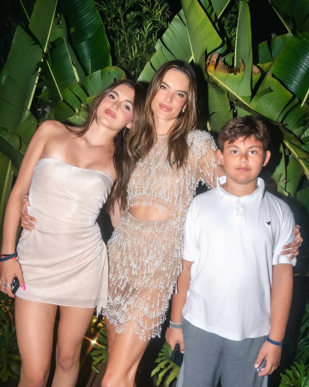 Жаркая новогодняя ночь: Алессандра Амбросио с 15-летней дочерью позируют в сверкающих платьях под пальмами