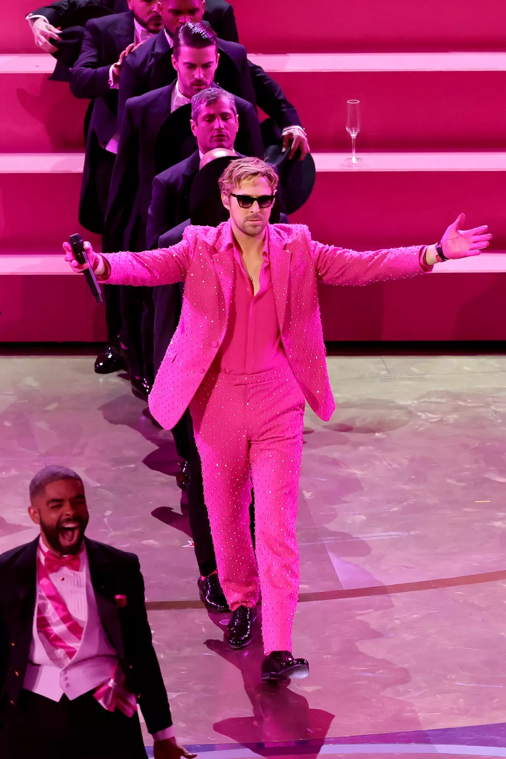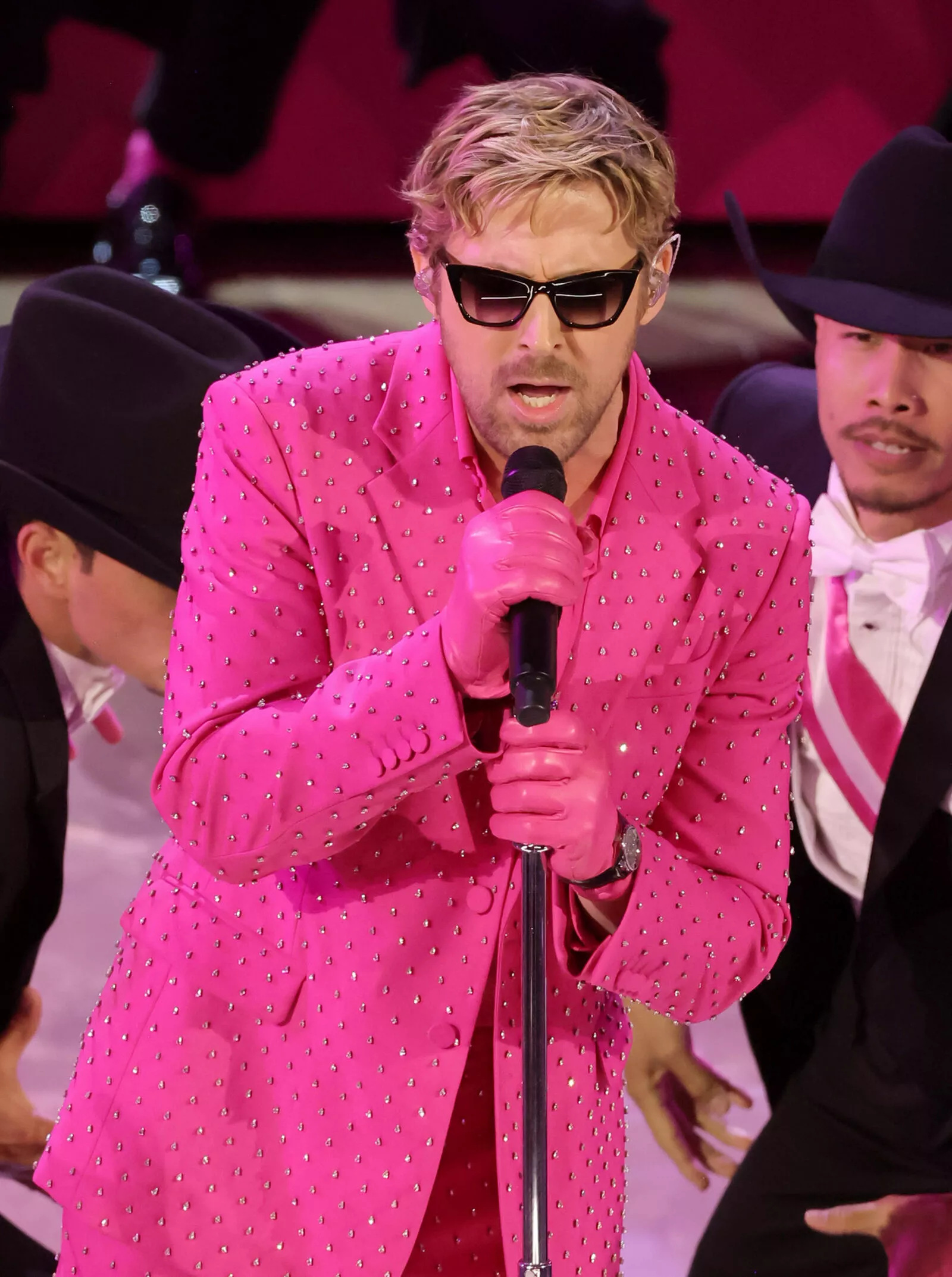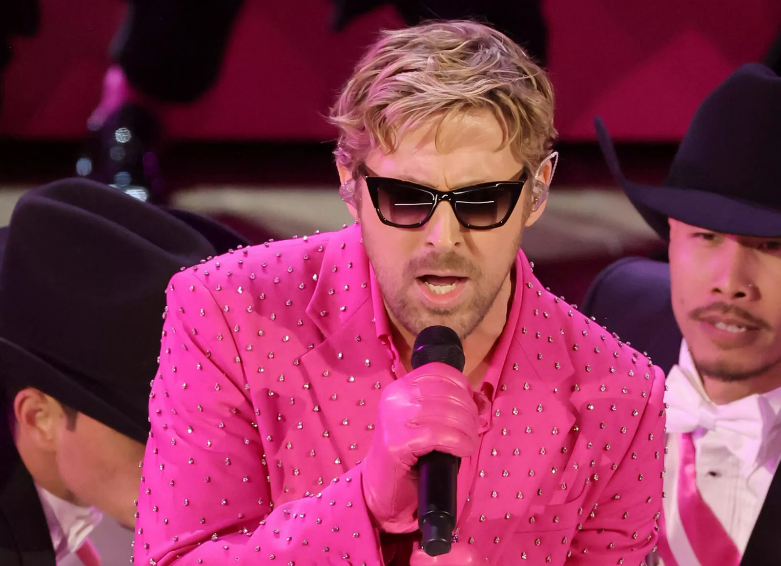 Образ дня: Райан Гослинг выступает на "Оскаре" в блестящем костюме цвета фуксии