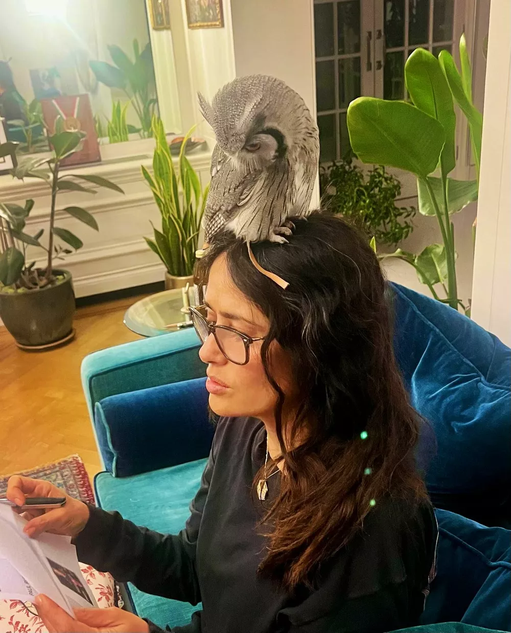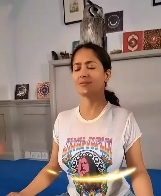 Перейти к новости: Сальма Хайек медитирует дома: фанаты заметили необычного помощника
