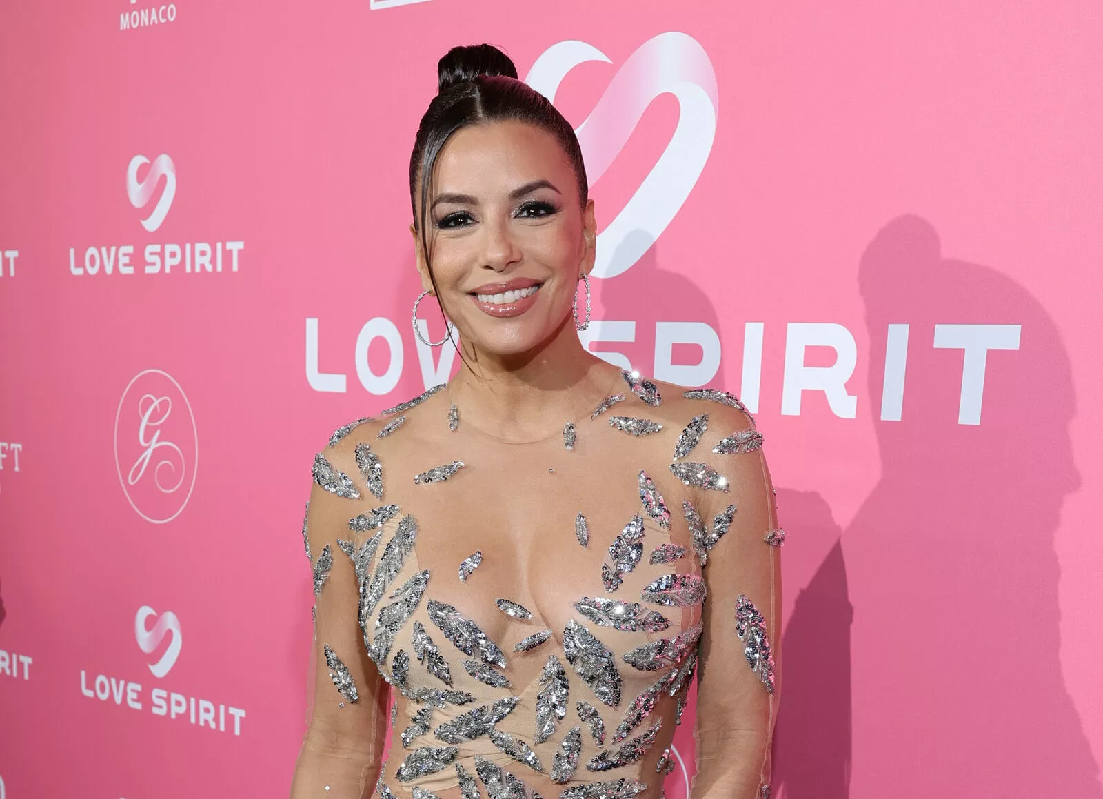 Ева Лонгория в прозрачном блестящем платье на светской вечеринке в Каннах