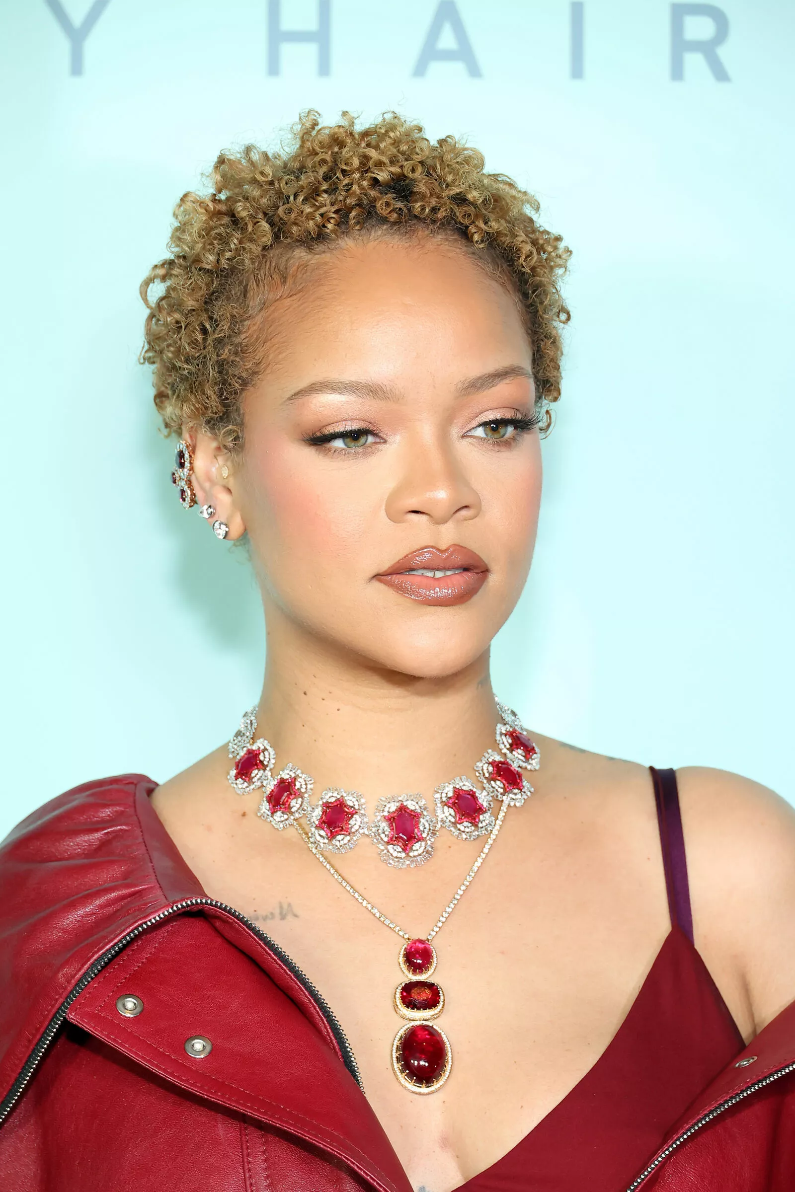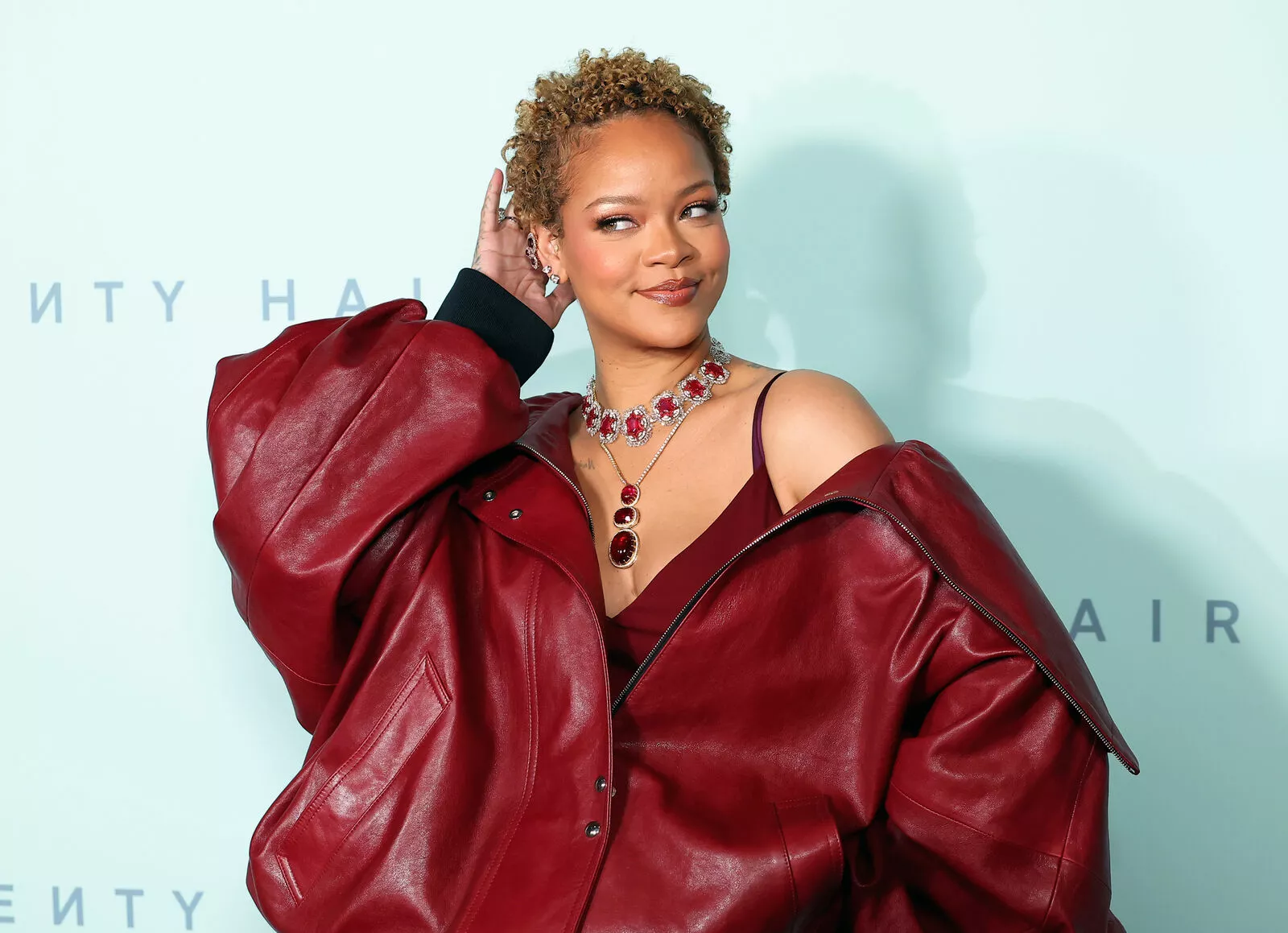 Образ дня: Рианна в алой коже на презентации Fenty Hair