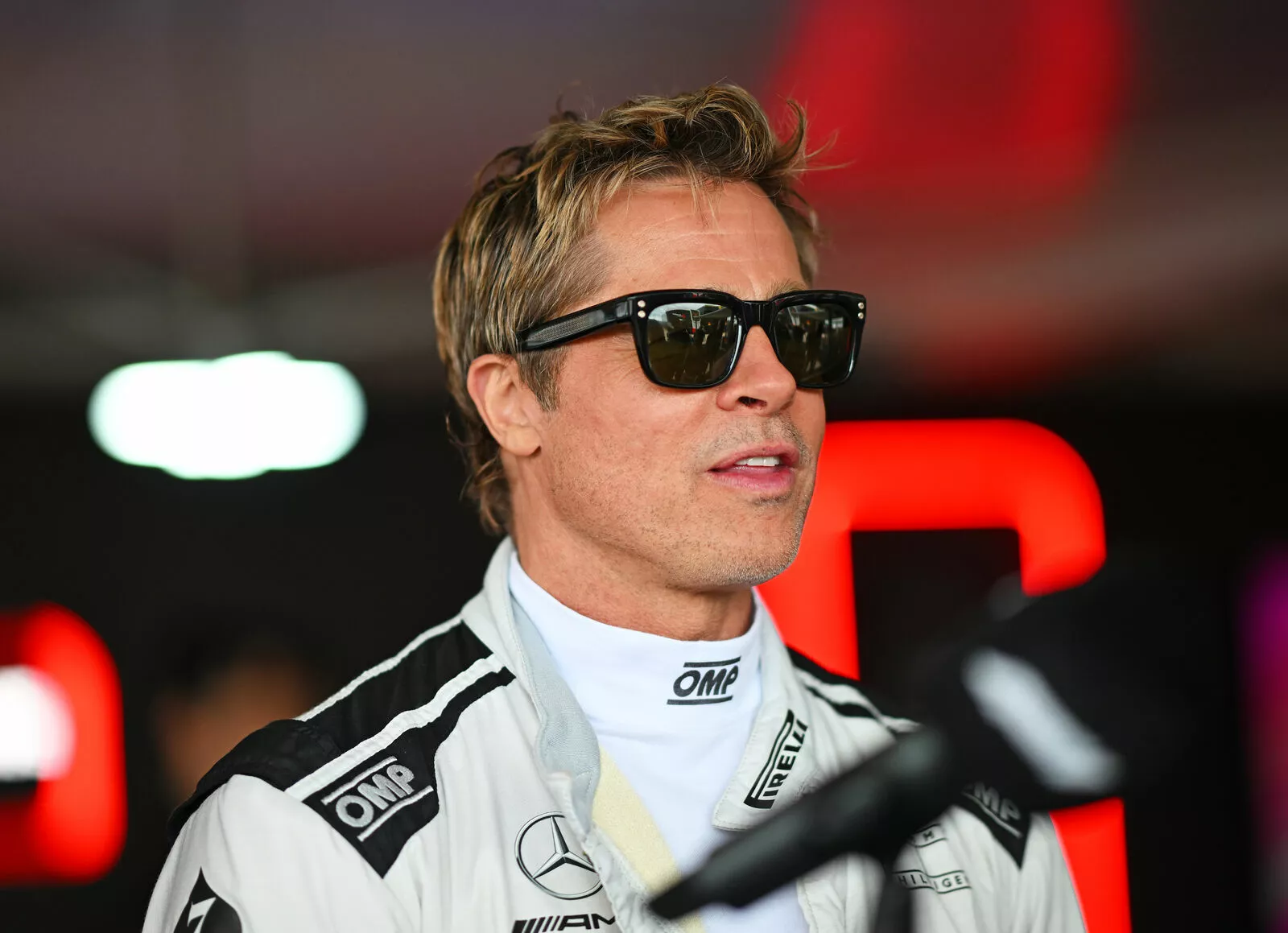Брэд Питт с новой прической улыбается толпе на Гран-при "Формулы 1"