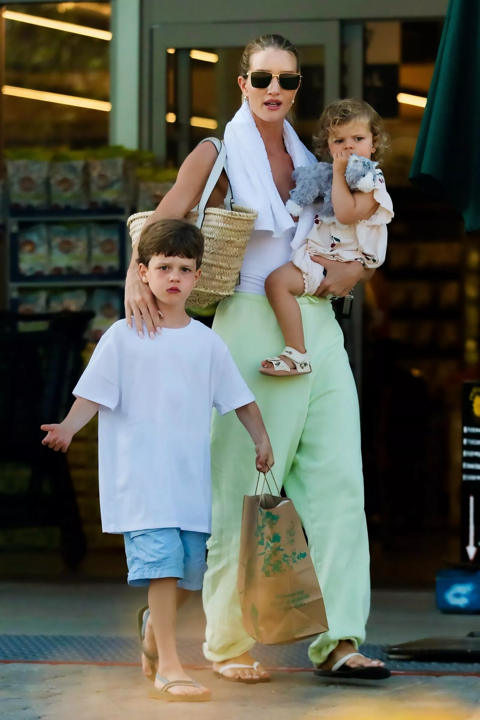 Рози Хантингтон-Уайтли ходит по магазинам Малибу с двумя детьми от Джейсона Стейтема
