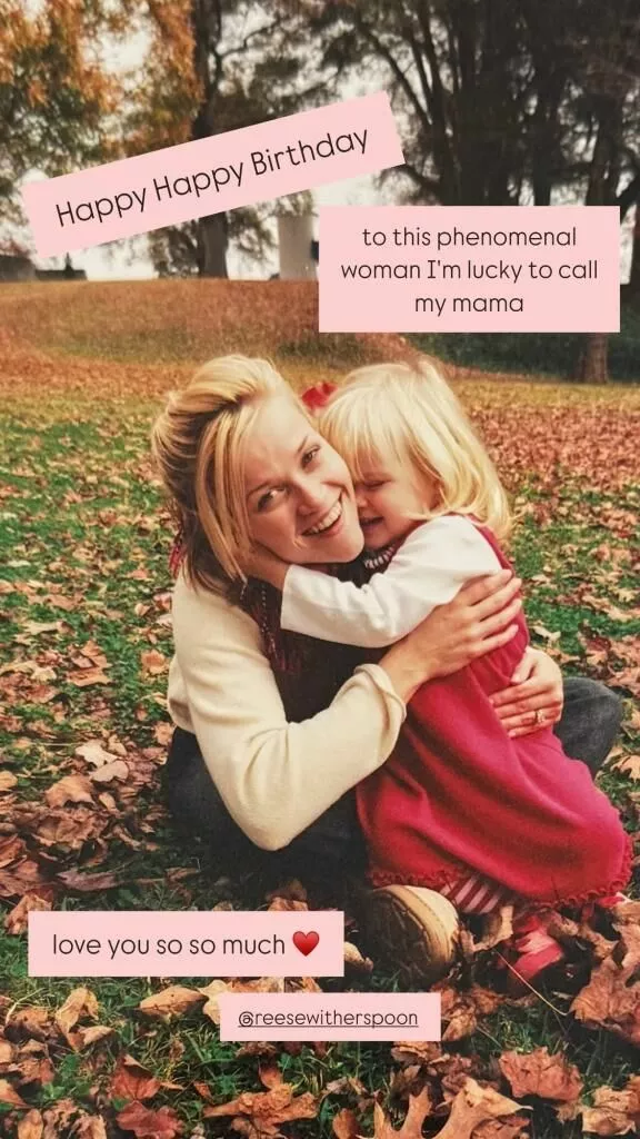 Перейти к новости: Дочь Риз Уизерспун трогательно поздравила ее с 49-летием