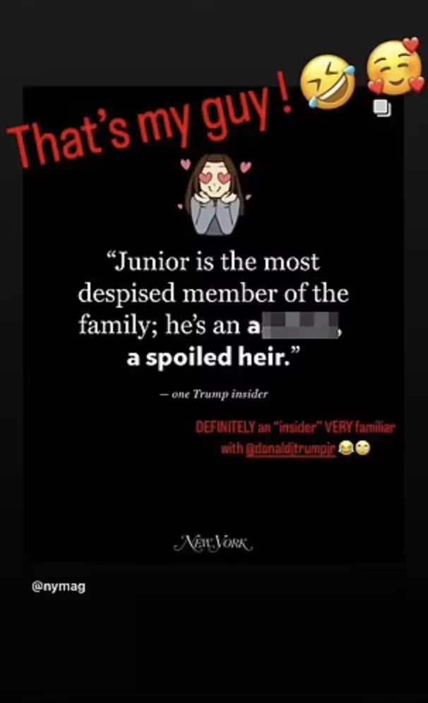 Перейти к новости: Девушка сына Дональда Трампа заступилась за него перед хейтерами