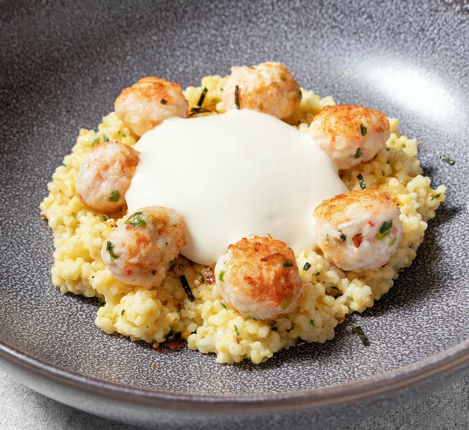 Пшенная каша с фрикадельками из креветок