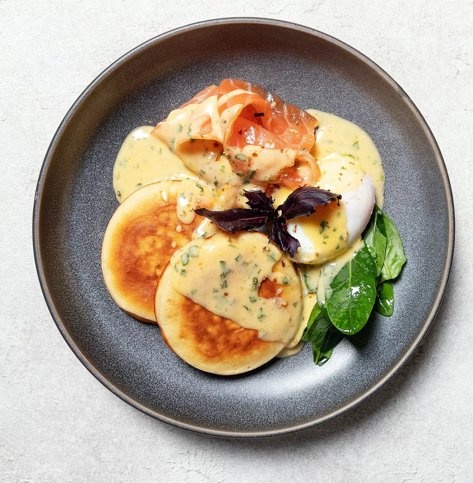 Панкейки с лососем и соусом беарнез
