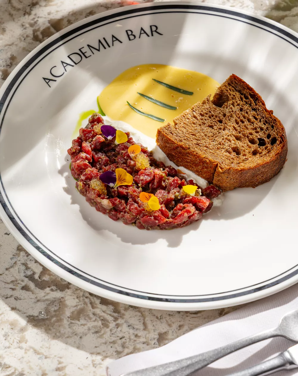 Тартар из мраморной говядины с щучьей икрой