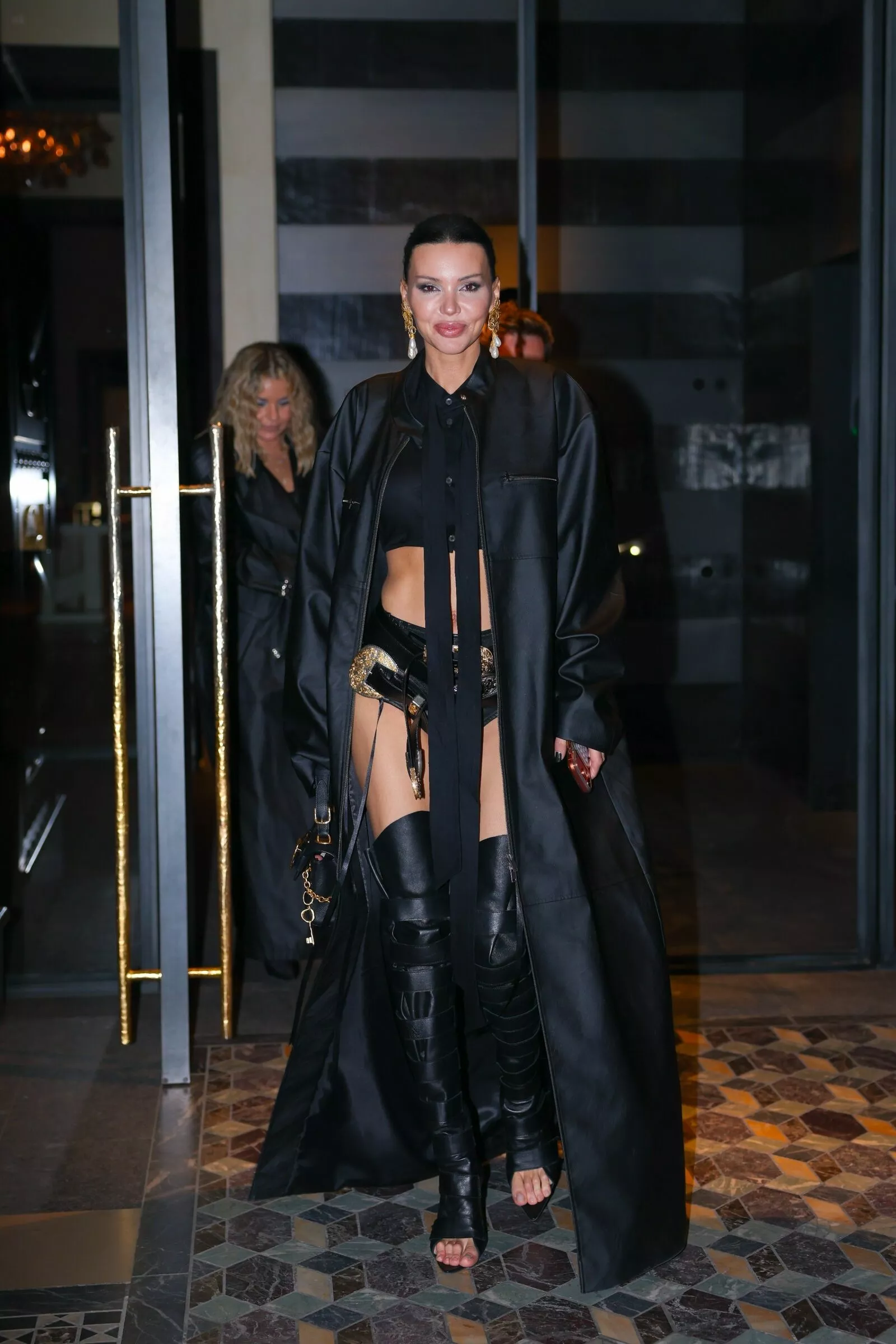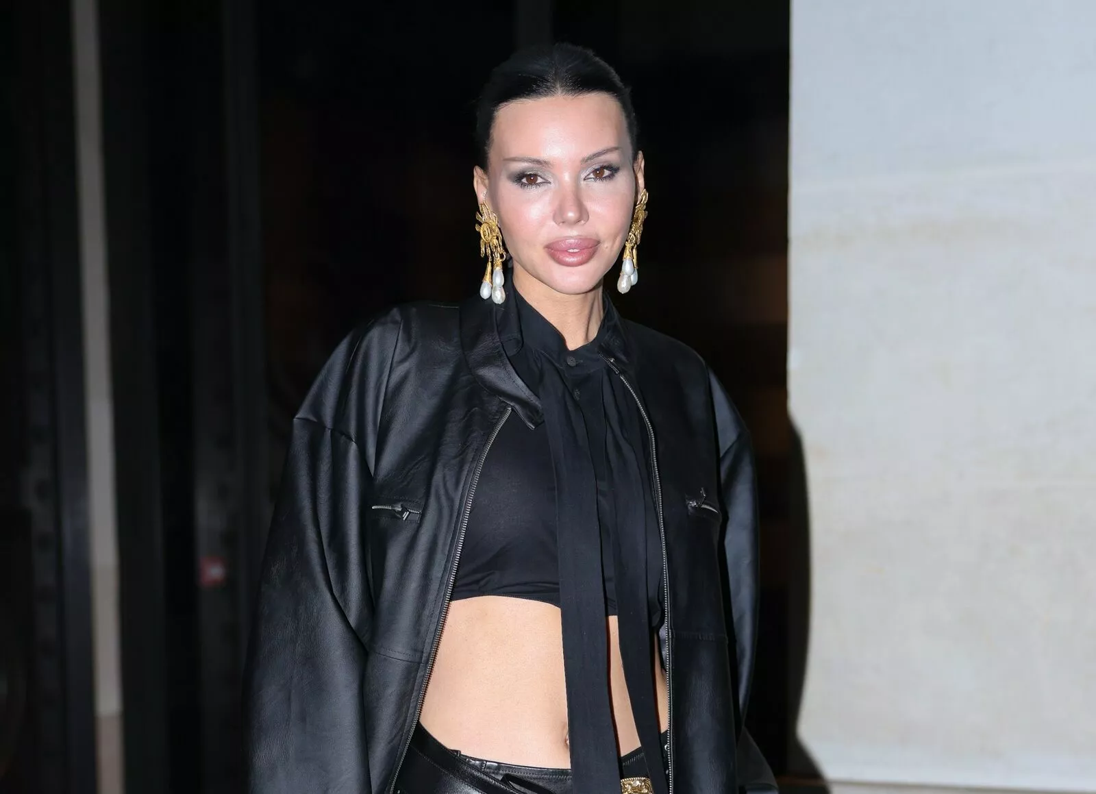 Оксана Самойлова появилась на модной вечеринке в Париже в кожаном образе от Schiaparelli