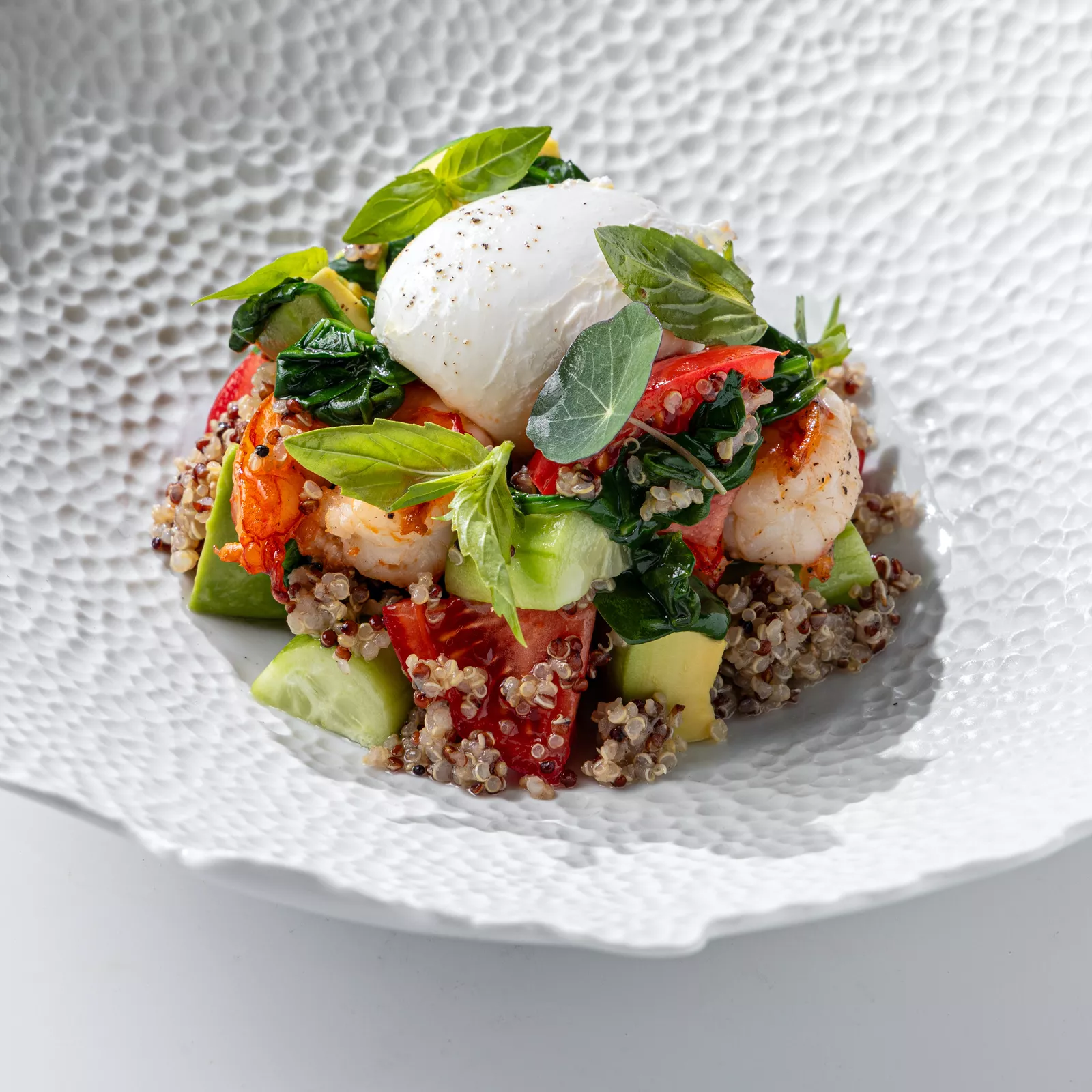 Салат с жареной креветкой и киноа