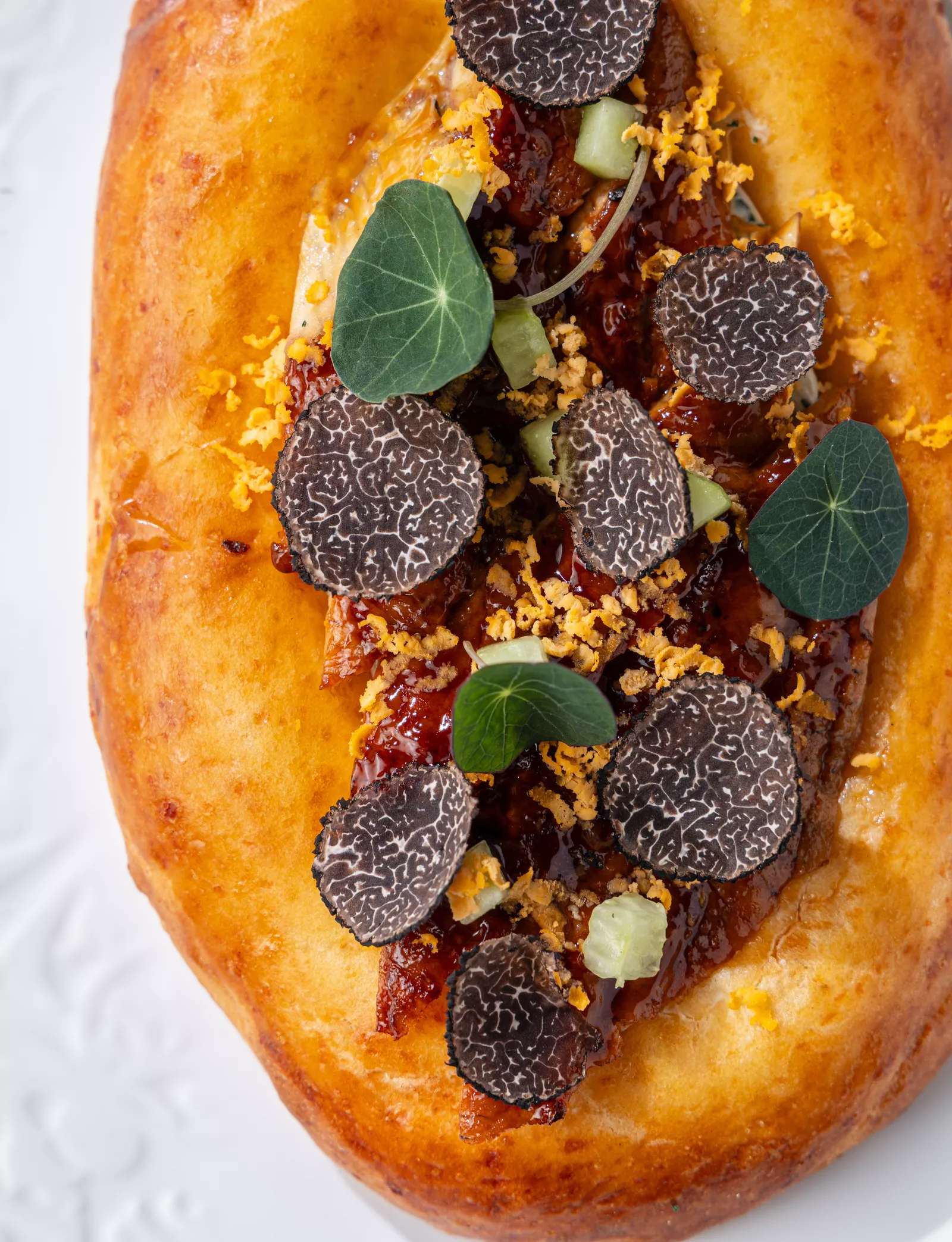 Кефирная лепешка с сыром, угрем и трюфелем