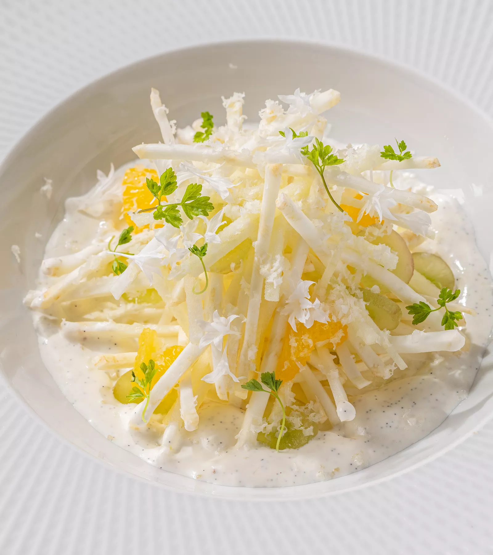 Хрустящий сельдерей с виноградом и миндальным соусом