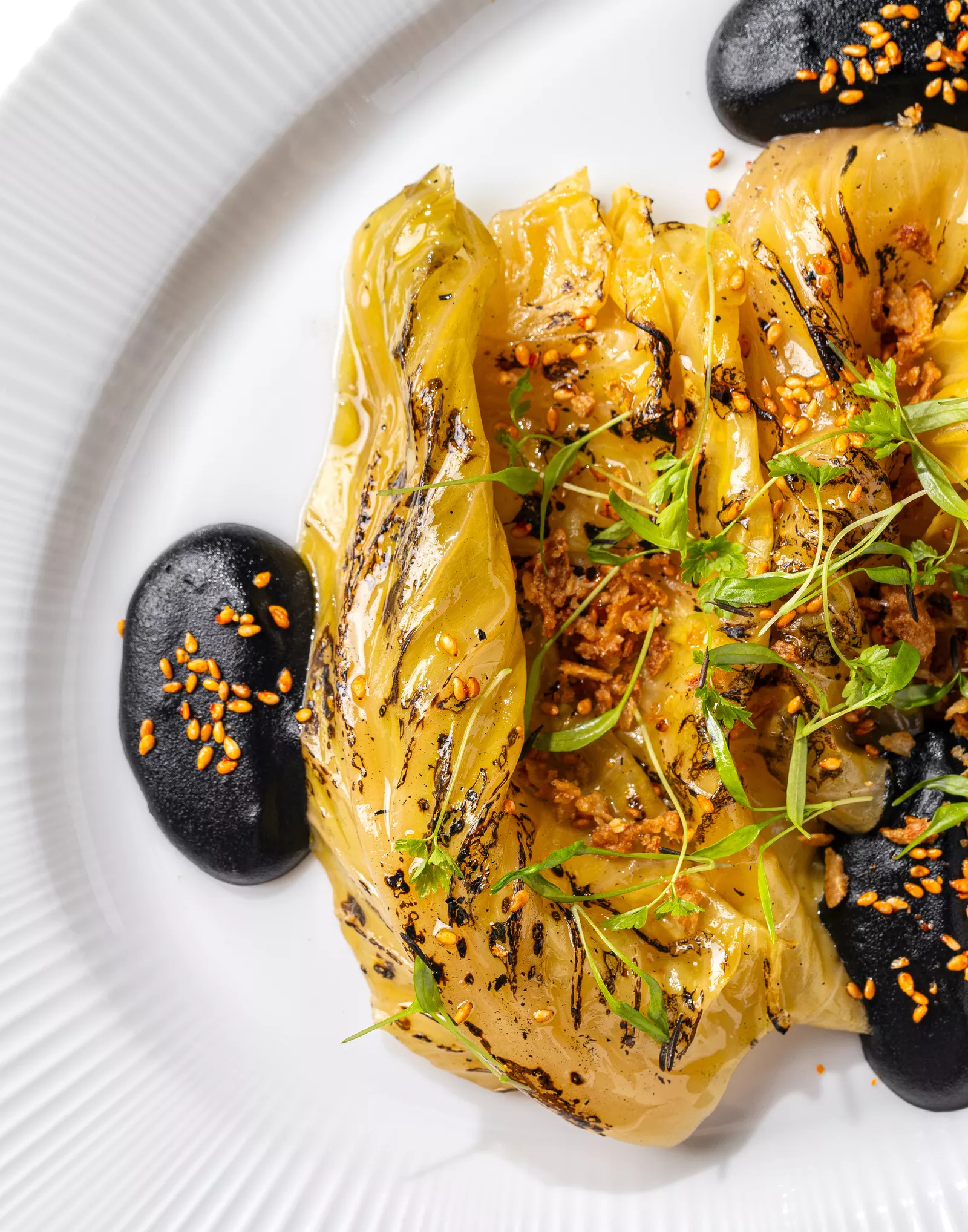 Капуста-гриль с пюре из черного чеснока и трюфеля