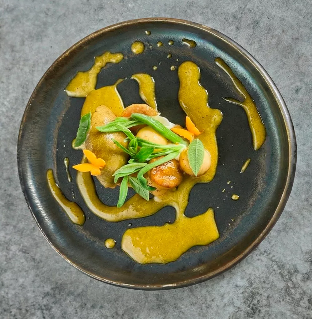 Маринованная фейхоа, вербена, соус из эстрагона