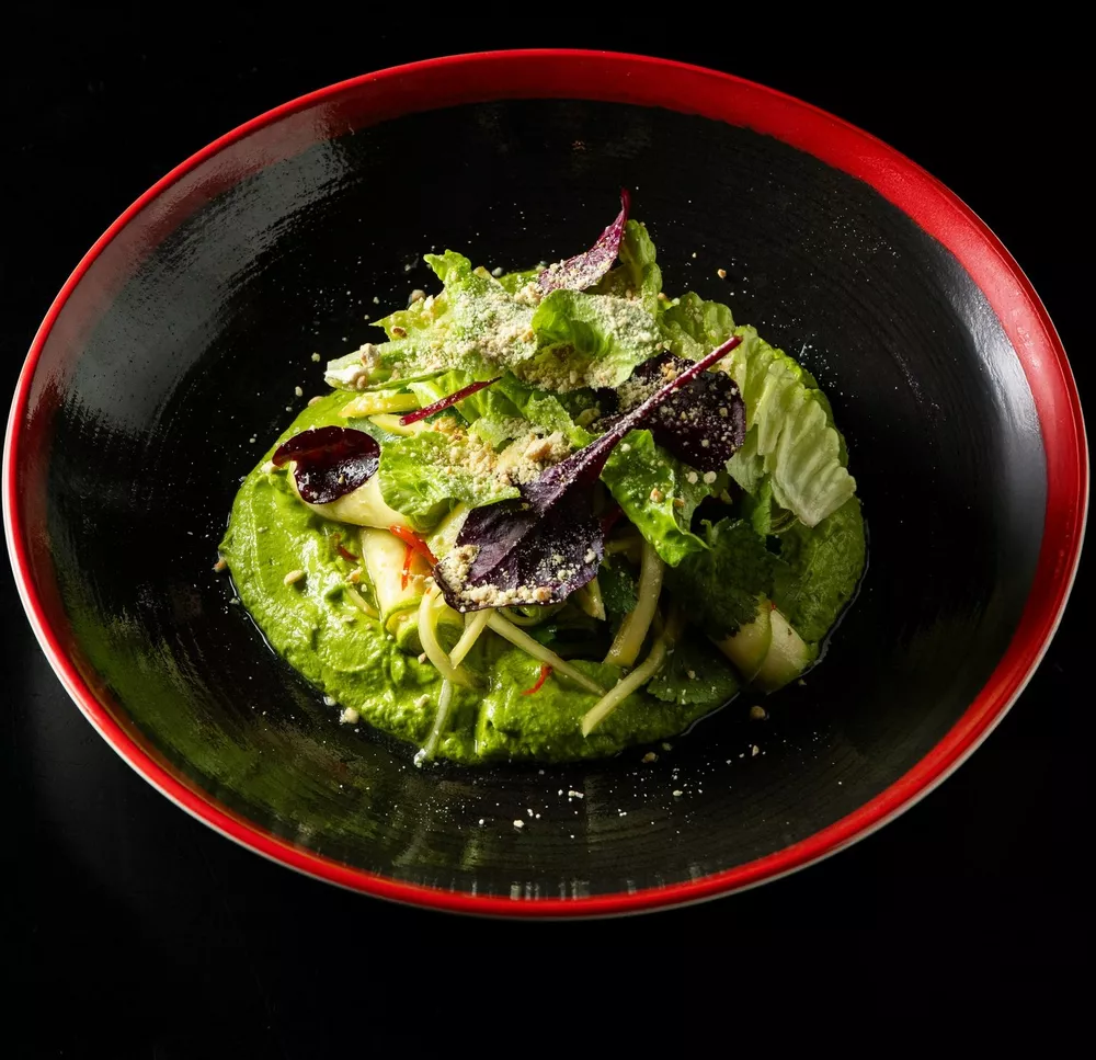 Севиче из кабачка с кремом из зеленого горошка