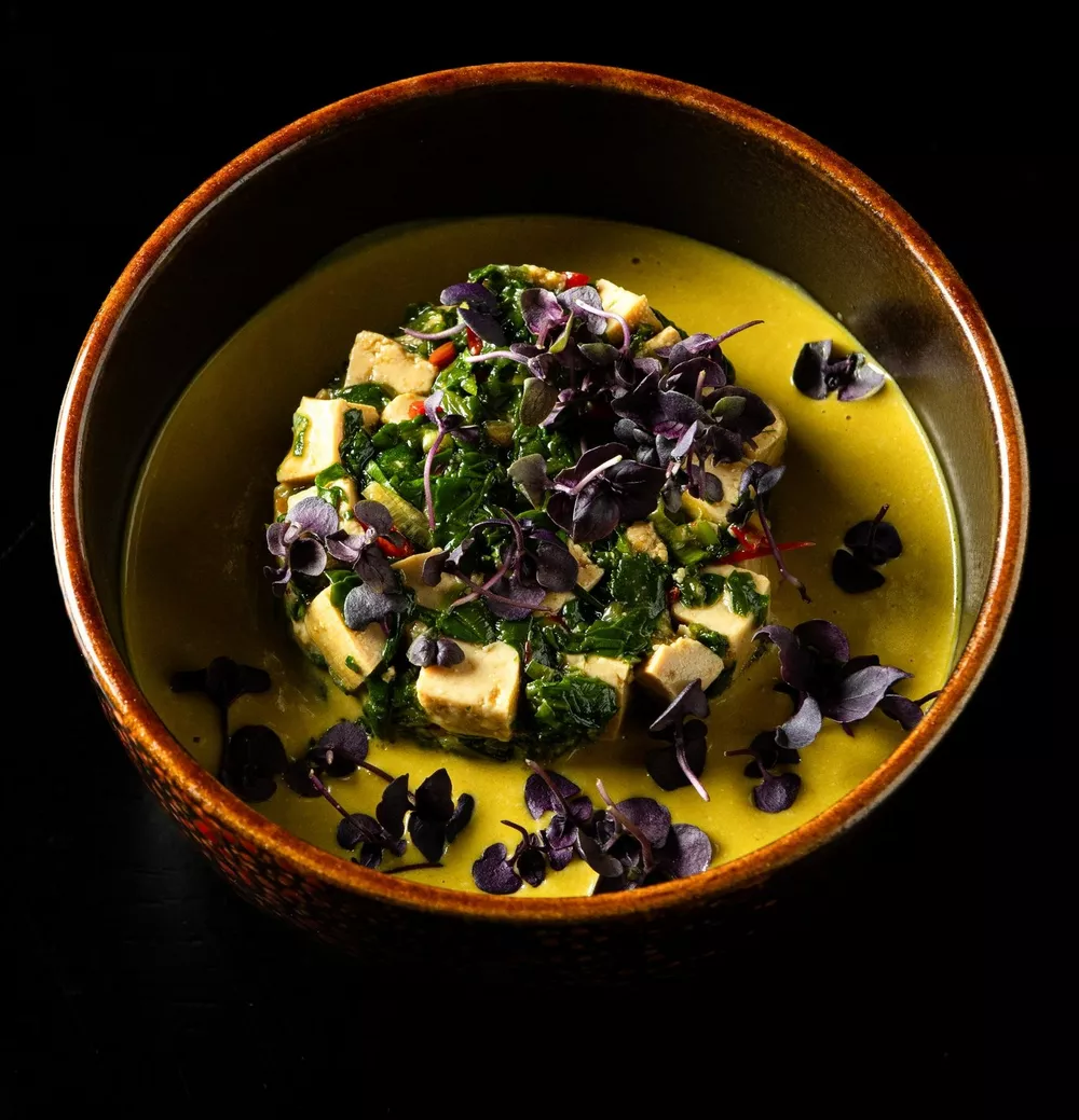 Крем-суп из батата с маринованным тофу
