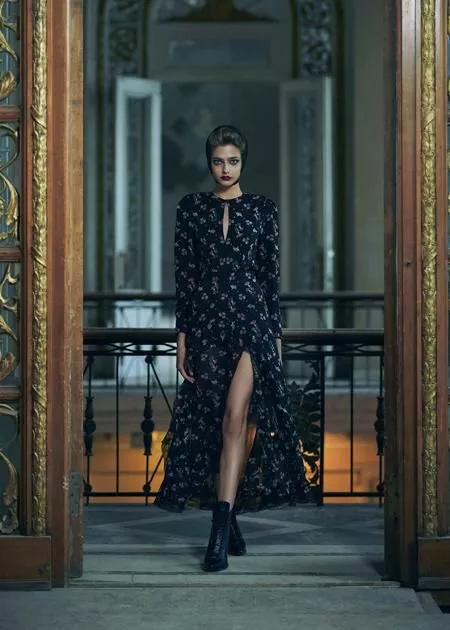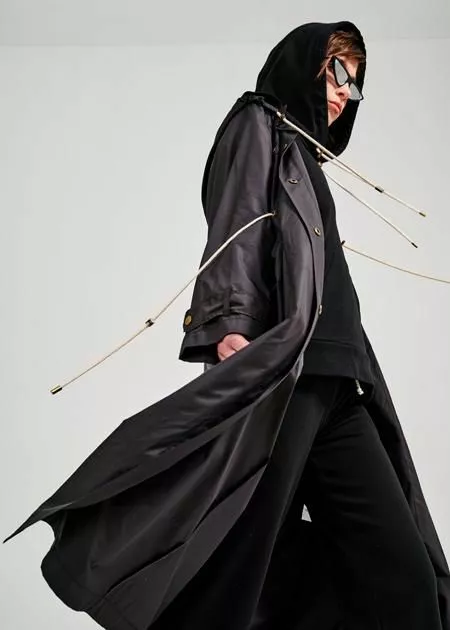 Героиня новой коллекции – покорительница космоса, смелая и целеустремленная, но по-прежнему элегантная и женственная. Силу и решительность героини подчеркивают сложные многофункциональные образы, смешение стилей и фактур, аксессуары в виде кожаных портупей и ремней.