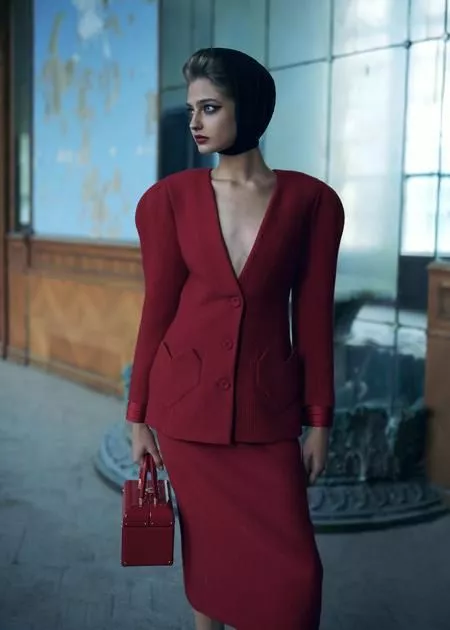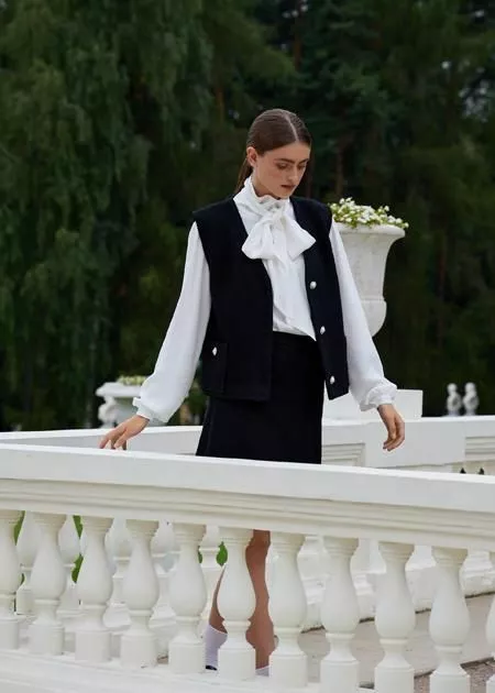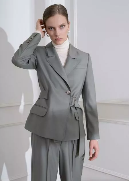 Новая коллекция – про эстетику четких линий и силуэтов, приглушенную цветовую гамму, костюмы тройки и блузы с бантами. В ней гармонично соединились бунтарство и сексуальность, строгость и элегантность.
