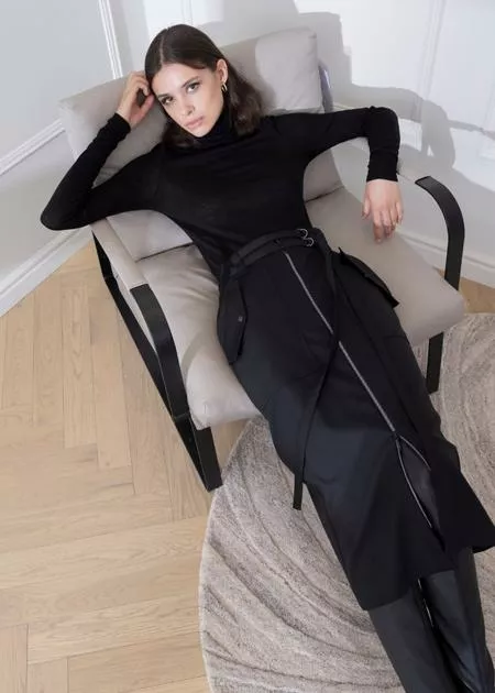 Новая зимняя коллекция прибалтийского бренда основана на идее свободы движения. Дизайнер пересматривает традиционные клише женственности и интерпретирует вдохновение архитектурой в удобные расслабленные модели. Впервые в истории марки в ассортименте появляется большой выбор утепленной верхней одежды, в том числе многофункциональный трансформер, превращающийся из полноценного пальто в жилет либо короткую куртку. Линия стеганых изделий изготовлена из переработанного сырья, спортивные костюмы - из новой для бренда премиальной шерсти с исторической итальянской фабрики, а классические костюмы – из веган-кожи.