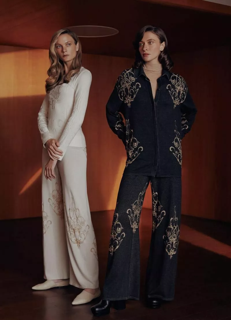 Основная шелковая капсула, которая идеально подходит для мегаполиса, выполнена в трех цветах: черный, слоновая кость и бежевый. В этом сезоне бренд впервые представил лимитированную линейку для выхода в свет или семейного торжества. Особенность капсулы – сложное фантазийное переплетение, дополненное вкраплением золота.