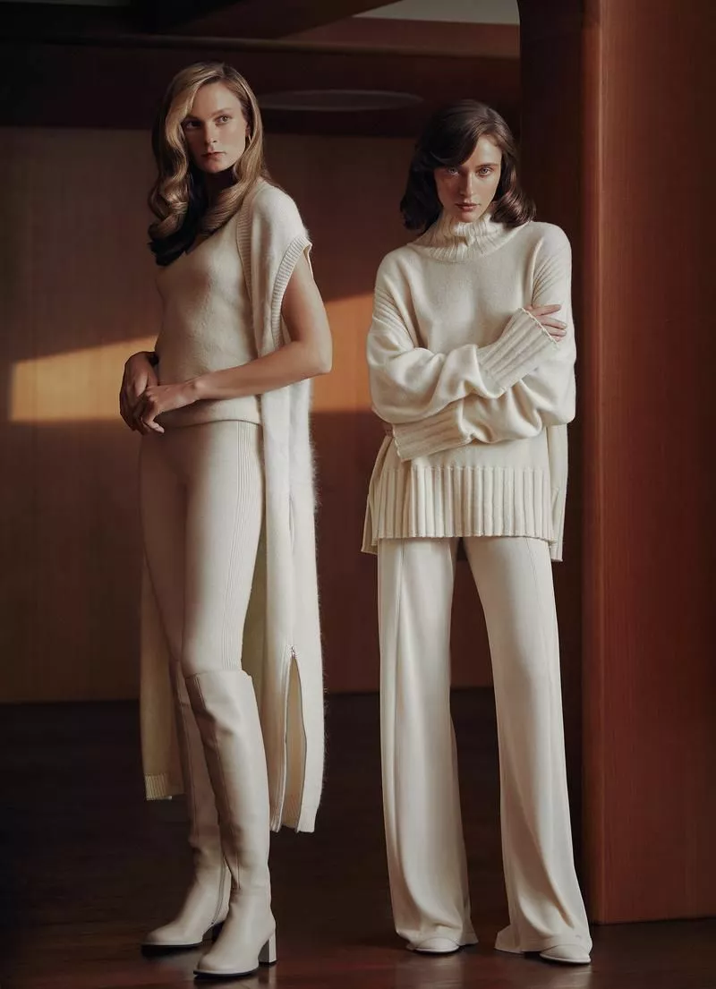 Коллекция из кашемира с шелком – основа зимней коллекции. В капсуле представлены комфортные и элегантные удлиненные и укороченные жакеты, блейзеры, мягкие брюки и свитера различных фасонов. Изделия комплектуются в многослойные образы – тонкие бадлоны, например, можно надевать под костюм или жакет.