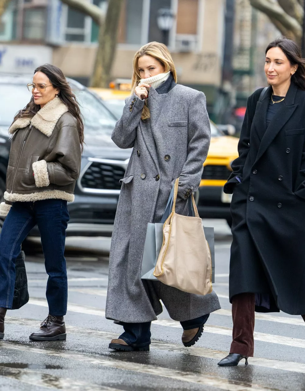 Дочка Голди Хоун 18 февраля выбралась на дневной променад по Нью-Йорку с подругами. Актриса выбрала двубортное серое пальто от Stella McCartney, а также свитер с высоким горлом сливочного оттенка и джинсы с массивными замшевыми ботинками на тракторной подошве.