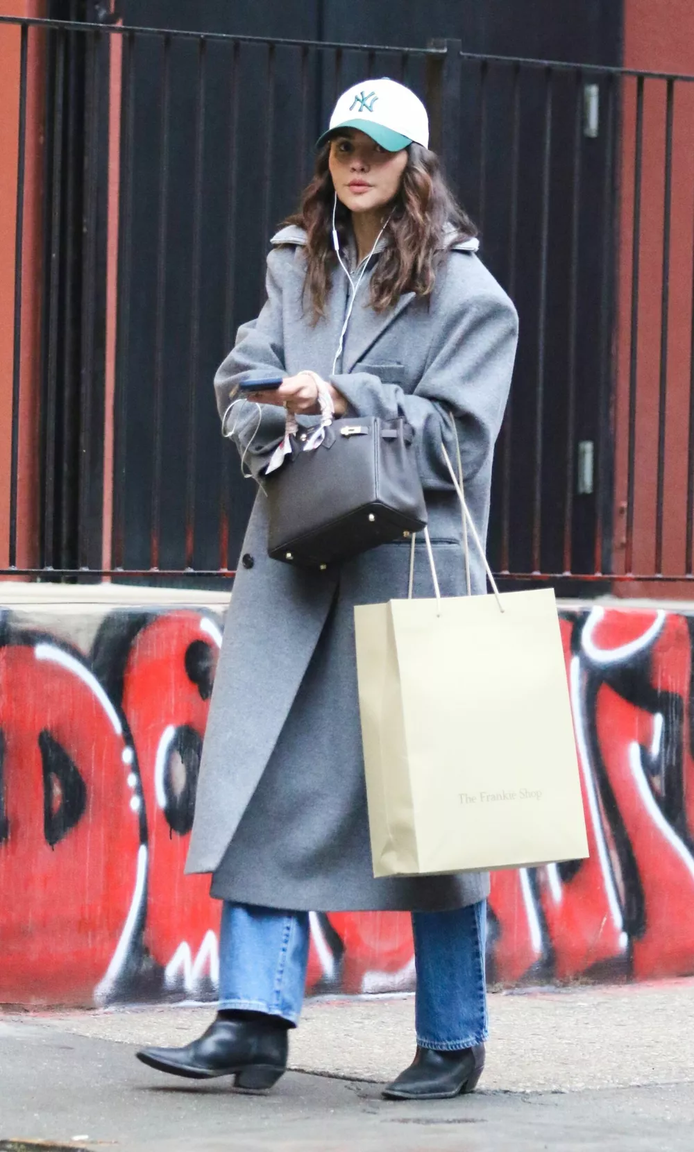 В тот же день, 18 февраля, папарацци удалось поймать в районе Сохо на Манхэттене актрису Эйсу Гонсалес, которая тоже отдала предпочтение джинсам и серому шерстяному пальто, но уже в сочетании с ковбойскими сапогами и белой бейсболкой.