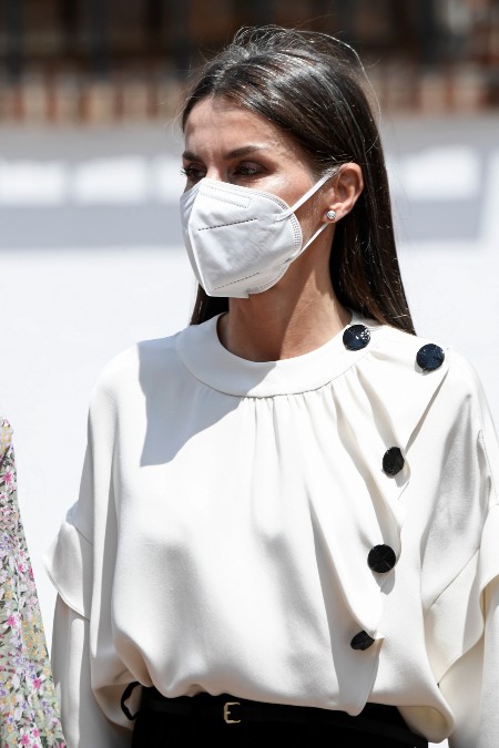 Сегодня королева Испании Летиция посетила очередное заседание Фонда по борьбе с наркоманией FAD (Foundation Against Drug adicction), попечителем которого является. На встречу Ее Величество приехала в платье с социальным подтекстом. Платье-футляр с ассиметричным вырезом-лодочкой и бантом на плече было создано испанским брендом Ulises Mérida в коллаборации с ассоциацией женщин, переживших сексуальное рабство. Завершили образ королевы в этот день стильные, но не отвлекающие внимание аксессуары: лодочки любимого королевой бренда Magrit, клатч Carolina Herrera и серьги Gold and Roses из розового золота с бриллиантами.1 июня король Филипп VI и его супруга открыли Мемориальный центр памяти жертв терроризма в Витории-Гастейс. Для этого официального мероприятия Ее Величество выбрала черное платье миди с рукавами в три четверти с оборками, контрастными пуговицами, полосатым поясом на талии, металлической фурнитурой и оборкой из шелковых кисточек. Образ дополнили замшевые туфли-слингбэки Carolina Herrera и лаконичная кожаная сумка Hugo Boss, которая сопровождает монаршую особу уже более 5 лет. Из аксессуаров отдельное внимание заслуживает футуристичное кольцо от Karen Hallam.День вооруженных сил – 29 мая – королева Испании отметила в розовом. Ее Величеству удалось надеть ультрамодный цвет и не противоречить протоколу. На Летиции было приталенное классического кроя двубортное пальто нежно-розового цвета (или, выражаясь образно, цвета клубничного зефира), чуть более насыщенного оттенка туфли и клатч дополнили образ total-pink.В пятницу, 28 мая старшая дочь королевы, принцесса Леонор, прошла традиционный обряд первого причастия или конфирмации – осознанного принятия веры – в церкви Асунсьон-де-Нуэстра-Сеньора в Мадриде. Родители и ее младшая сестра, конечно, не могли такое пропустить. 48-летняя королева в этот день выбрала черно-белый наряд – белую объемную блузку сложного кроя с декоративными контрастными пуговицами и оборками Maksu, классические брюки на высокой талии и с тонкий ремешком, черные туфли без каблука с бантиками и того же цвета клатч.Король Филипп, принцесса София, принцесса Леонор и королева Летиция