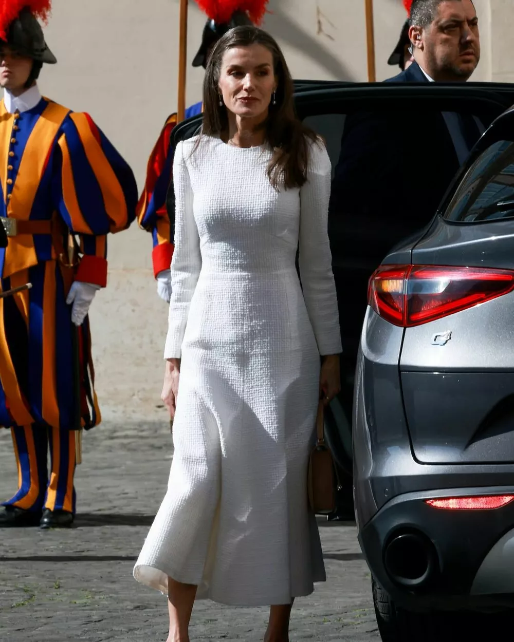 Монархи уже находятся в Риме, с особым визитом в Ватикан, - гласит официальная подпись к свежим фото в аккаунте испанского дворца. - По этому случаю донья Летиция снова надела белое, цвет, который источает элегантность и изысканность. Платье классического дизайна, неподвластного времени и идеально подобранного для встречи с папой Львом XIV. Имейте в виду, на этот раз образ Летиции обошелся без традиционной мантильи.