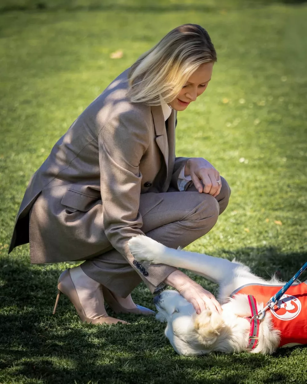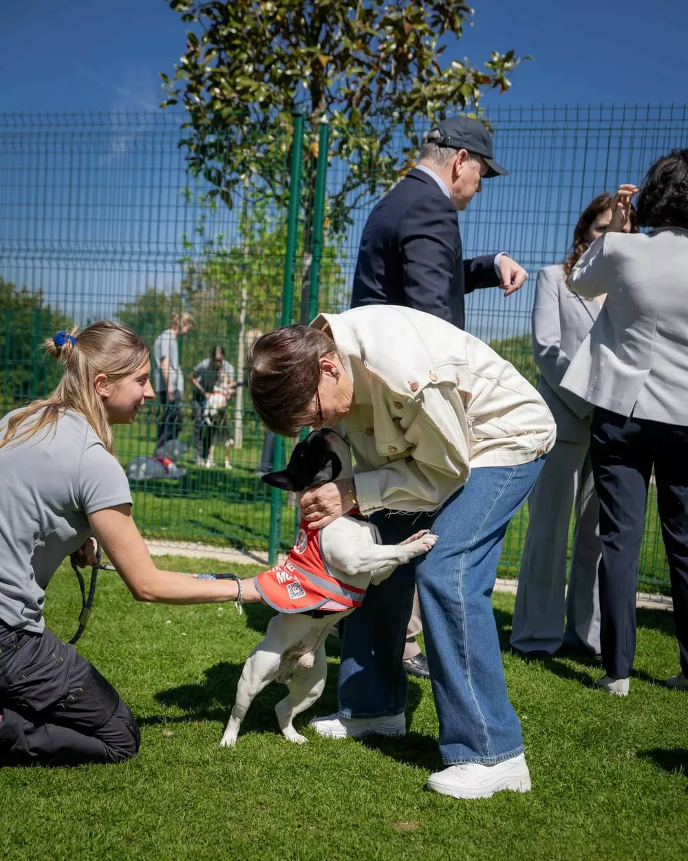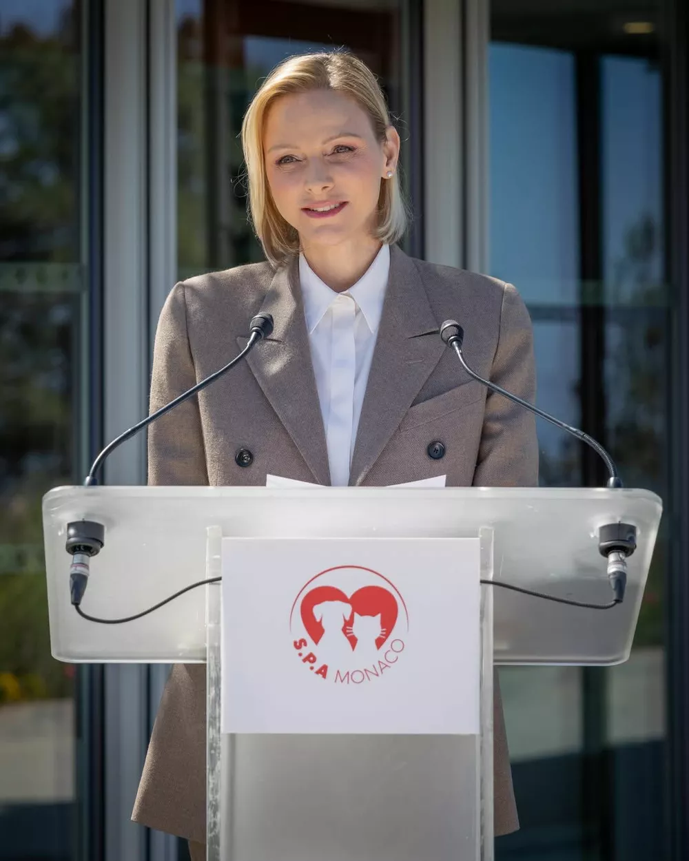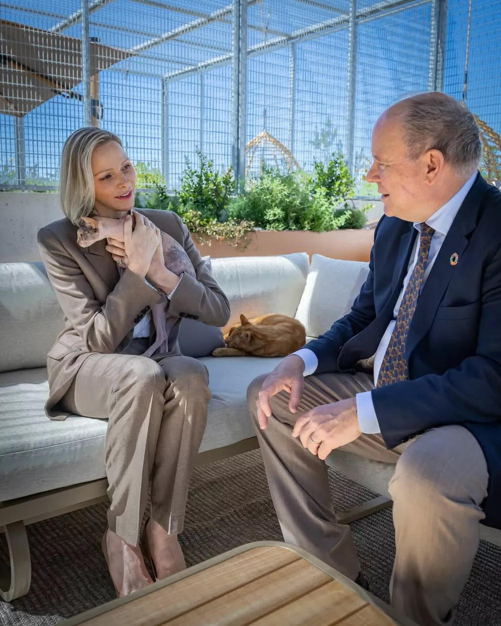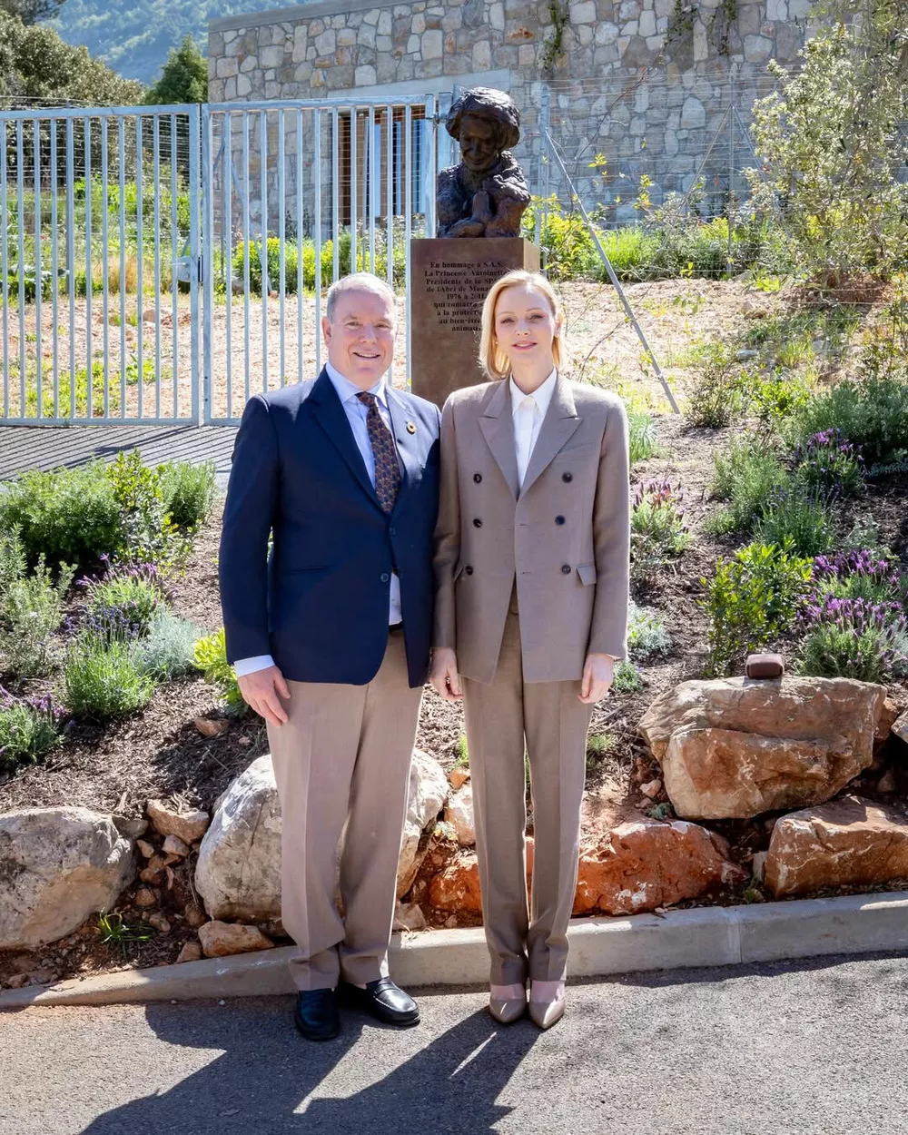 Княгиня Шарлен и князь Альбер II совершили памятный визит в приют для животных коммуны Пей, приуроченный к завершению масштабного благоустройства территории. Шарлен, которая с 2022 года возглавляет приют, выглядела по-деловому элегантно: серый брючный костюм, белая рубашка и туфли на каблуке в тон. Вместе с другими членами монаршей семьи — принцессой Стефанией, ее дочерью Камиллой Готтлиб, кузиной князя Мелани‑Антуанеттой де Масси и братом Гаретом Уиттстоком — супруги с искренним интересом осмотрели все новинки: от зеленых уголков до специальных площадок, где питомцы могут познакомиться со своими будущими хозяевами.