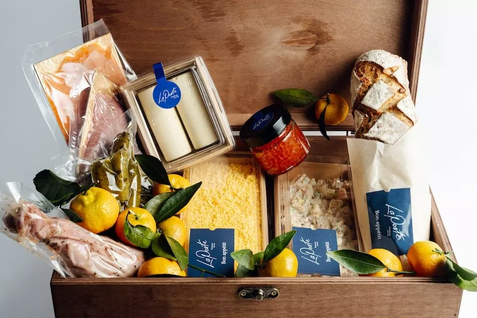 Сервис доставки исключительно вкусной выпечки La Poste подготовил прадничную коллекцию, в которой есть имбирные венки и пряничные домики, конструкторы для самостоятельного строительства этих домиков, штоллены, куглофы, слоеные “елочки”, панеттоне… Из находящихся в Москве и ближнем Подмосковье пекарен могут доставить не только пряники и плюшки, но еще и большой новогодний гастрономический бокс с оливье с пастрами, “мимозой” с лососем су-вид, голенью индейки в травах, красной икрой, рыбной и мясной нарезкой, трюфельным маслом, кедровым флютом, солеными огурцами и мандаринами (18000 руб.).