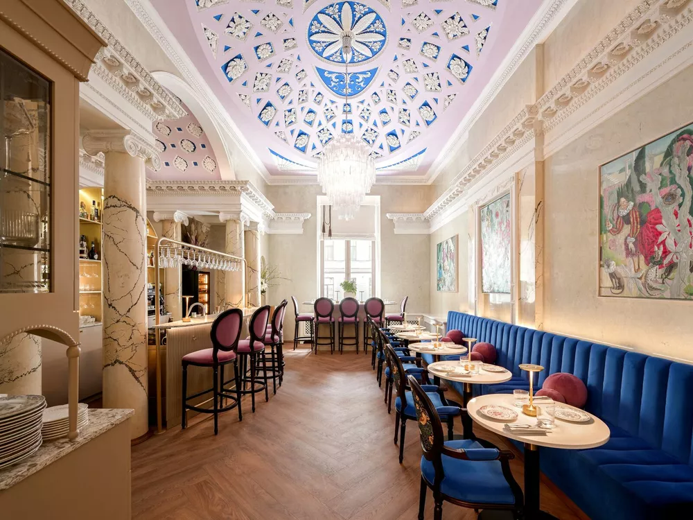 Здесь время течет особенно неспешно, так что начинаешь особенно ценить момент, поэтому мы настоятельно рекомендуем заглянуть сюда на завтрак. Уникальное предложение от бренд-шефа Ильи Харченко, увлеченно переосмысливающего русские и европейские блюда, – воспроизведенные старинные утренние ритуалы с подачей блюд и напитков в винтажной посуде. Как говорит шеф, в те времена во сколько господа встали – во столько и завтрак. В завтраках Графа и Графини (первый посытнее, второй полегче и послаще) присутствуют яйца всмятку с черной или красной икрой, паштет с луком фри или риет из тунца, блины из печи или сырники со сметаной, похлебка с дичью и белыми грибами или пшенная каша, выпечка и варенье, фреши и чай-кофе, яблочная настойка или креман… Если так серьезно разогнаться с утра, завтрак вполне может перерасти в обед с осьминогом с картофельным пармантье, тендерлоином с трюфельным кремом и соусом демиглас, карамелле с крабом или ризотто с белыми грибами и трюфелем. Коктейльным дополнением к трапезе могут послужить авторские напитки из карты шеф-бармена Даниила Лемана “12 вкусов года”, для которой он исследовал сезонные продукты, зафиксировал их лучшие ноты и часть из них сервирует в дизайнерских, созданных вручную бокалах от Анастасии Панибратовой.