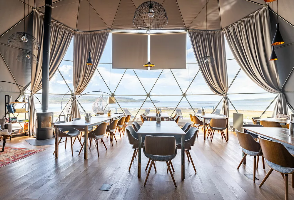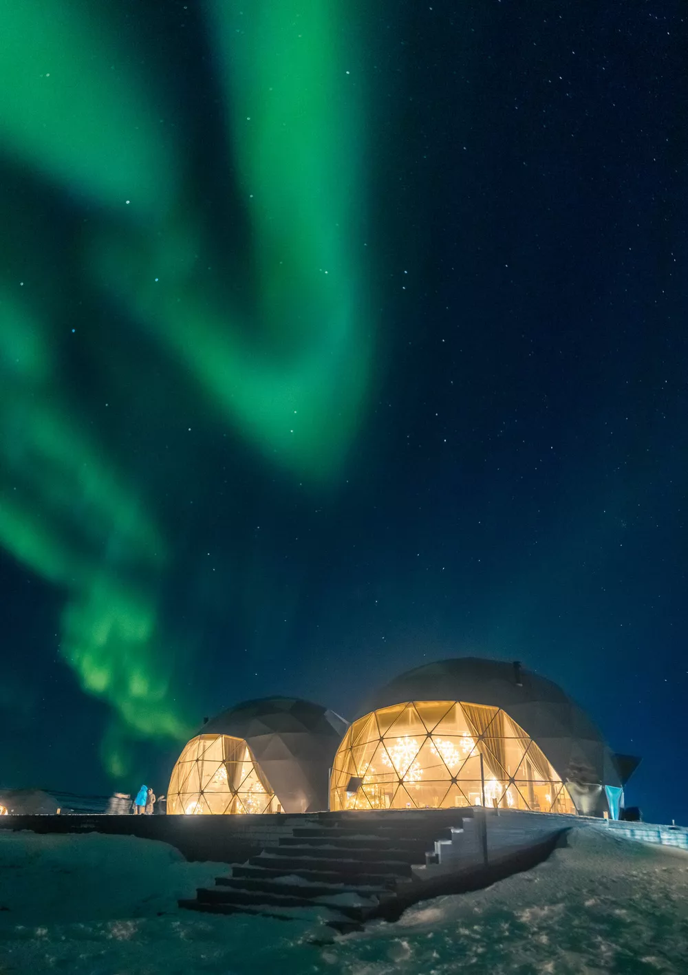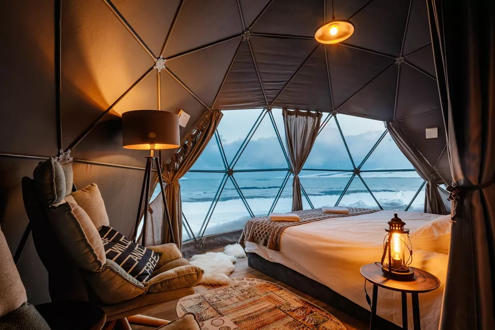 Помимо 26-ти сфер с видом на побережье, в арктик-отеле можно разместиться в отдалении, на сопках, в одном из 13 коттеджей или одной из трех люксовых вилл, откуда открывается еще более эпичный вид на красоты Кольского полуострова. Для тех, кто любит проводить вечера у камина и готовить на собственной кухне, эти варианты станут отличным решением, вне зависимости от сезона. К таким домикам прилагается отдельный трансфер, но и регулярные прогулки вдоль берега до ресторана и обратно тоже будут приятны.