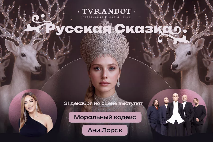 В ресторане-дворце “Турандот” будет разыграна захватывающая “Русская сказка” с красочными декорациями и костюмами, а хэдлайнерами ночи станут группа “Моральный кодекс” и Ани Лорак. Бессменный шеф-повар Дмитрий Еремеев в качестве гастрономического дополнения к шоу создал эксклюзивный сет. Маленькие гости получат подарки, а взрослые – чувство глубокой удовлетворенности от присутствия на одном из самых дорогих и статусных новогодних праздников в России.