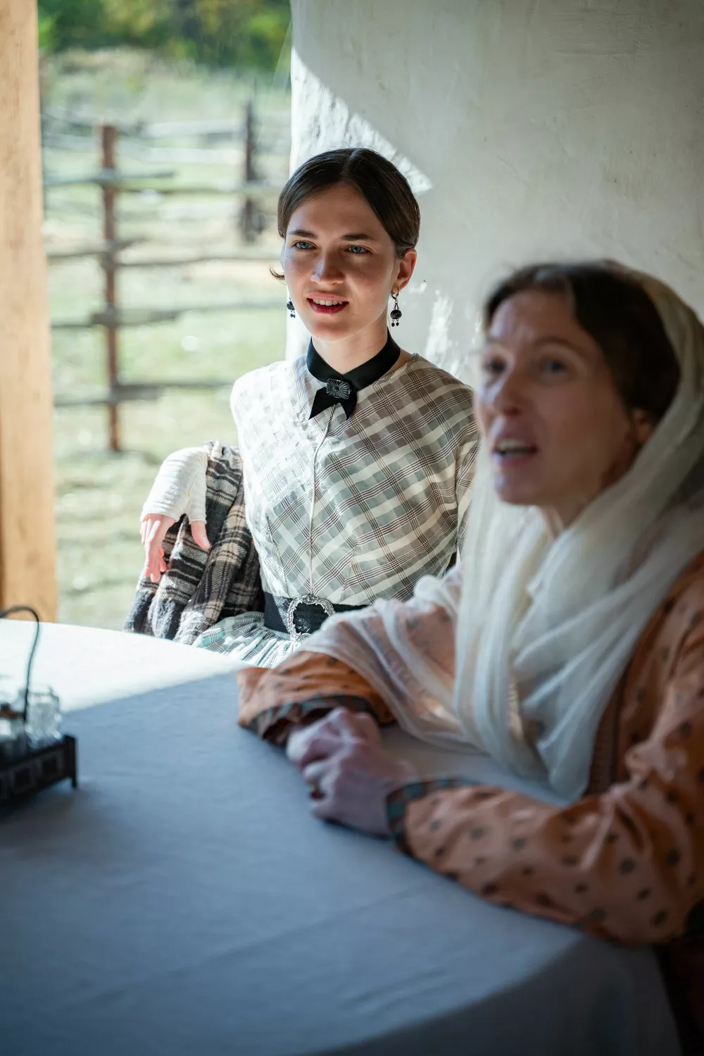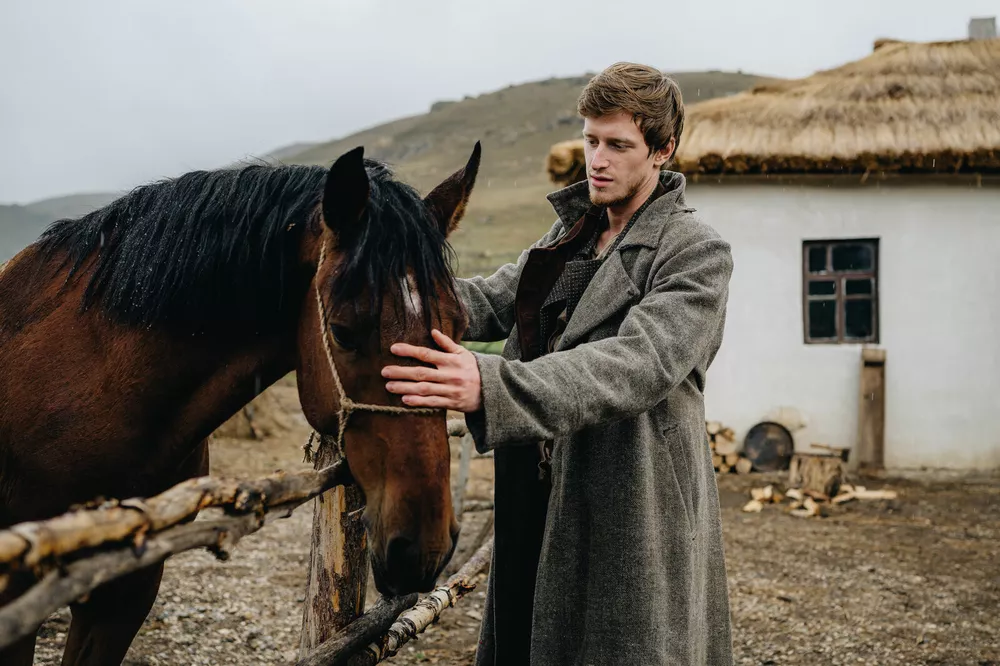 Мы с Бакуром это немножко обсуждали. В самом начале съемочного процесса я к нему подошел — речь шла о произношении некоторых слов, конечно, иначе люди говорили. Бакур сказал простую, но существенную вещь: люди были тогда, люди есть и сейчас. Для него было важно, чтобы мы слишком себя не коверкали, а сохраняли органику, даже играя персонажей из другого времени.