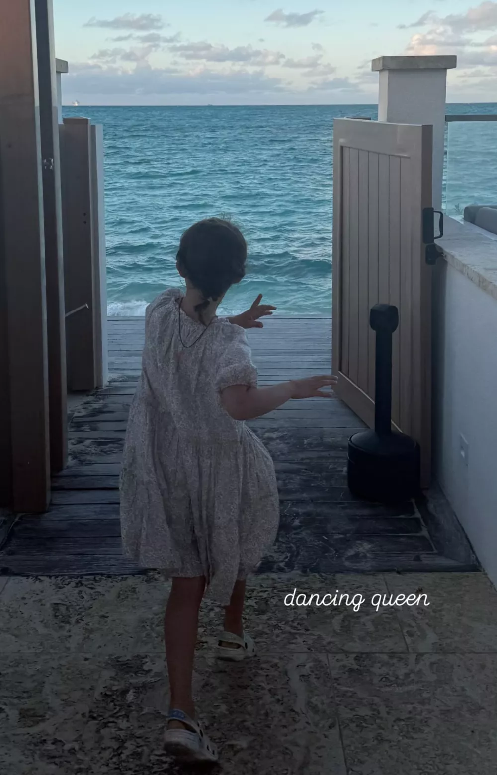 Особое место в подборке заняли кадры с шестилетней Одой Валентиной. По сложившейся традиции Ольга не показывает лицо дочери, но запечатлела ее в момент танца на берегу моря.