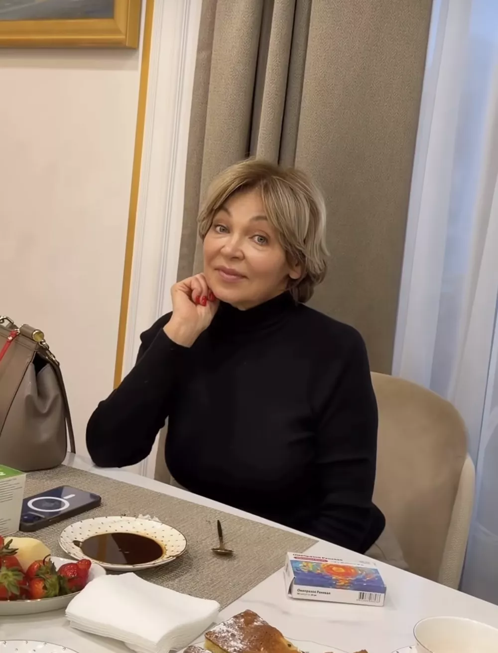 Певица Алсу провела теплый вечер наедине с мамой и решила запечатлеть ее на видео. В кадре 71-летняя Разия Исхаковна, одетая в темную водолазку, расположилась за столом. Ее образ получился сдержанным и элегантным: волосы аккуратно уложены, макияж — едва заметный, с акцентом на естественность.