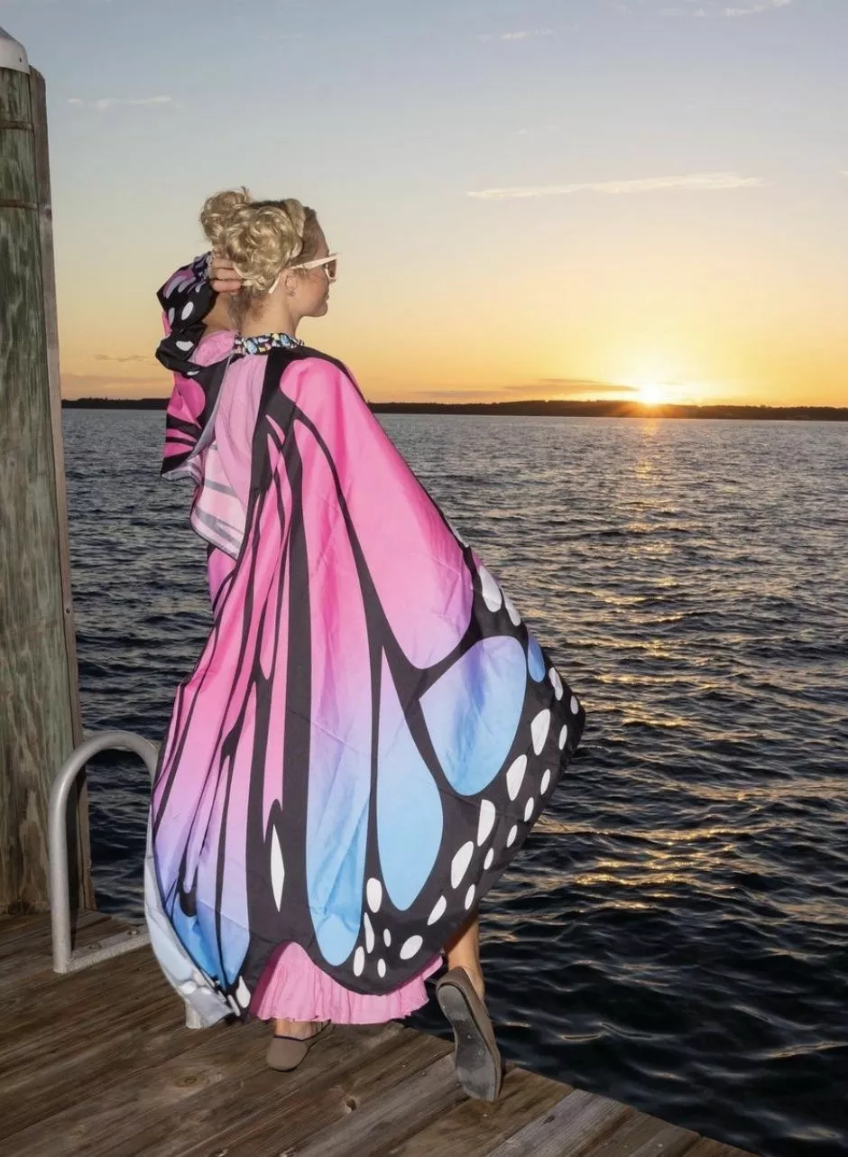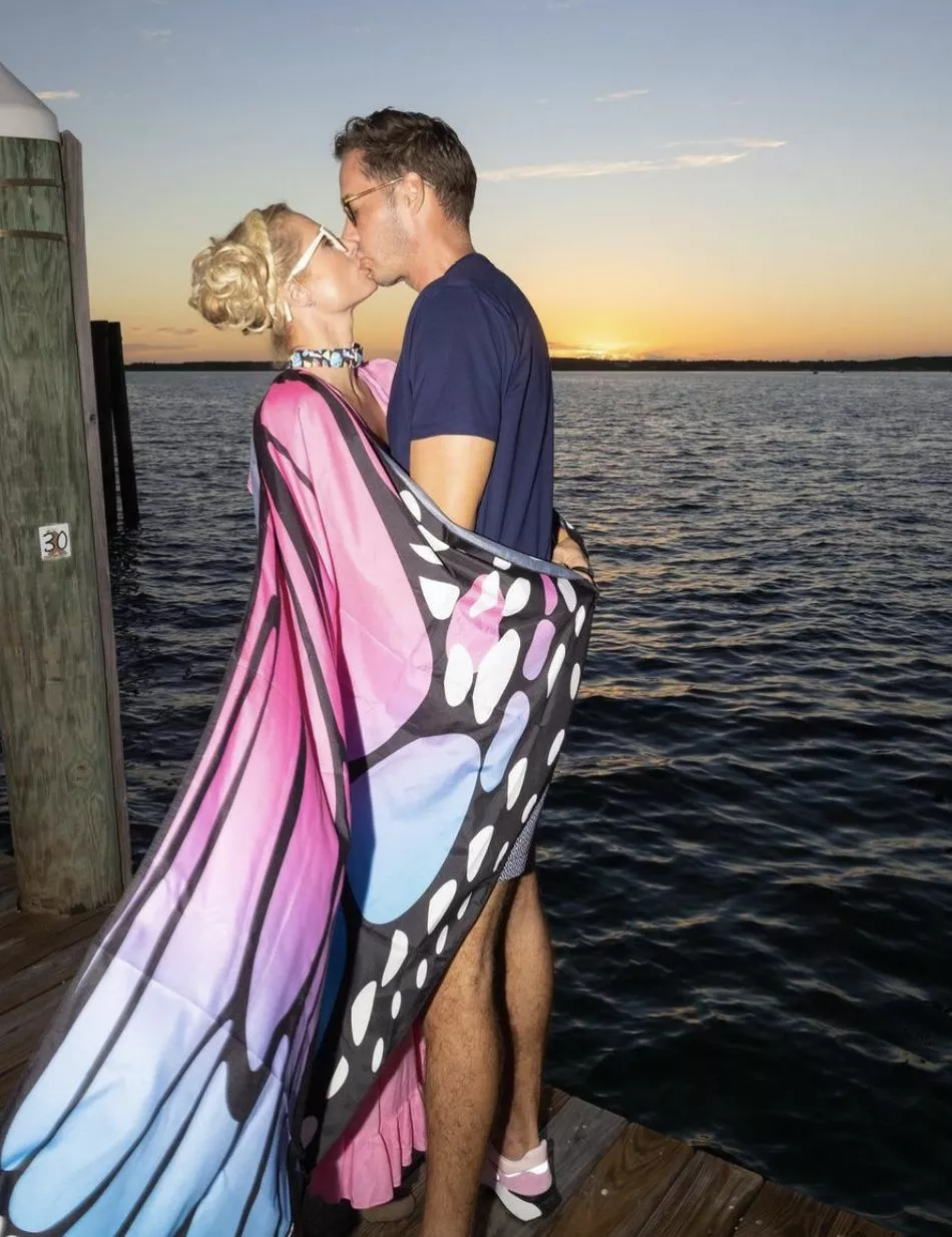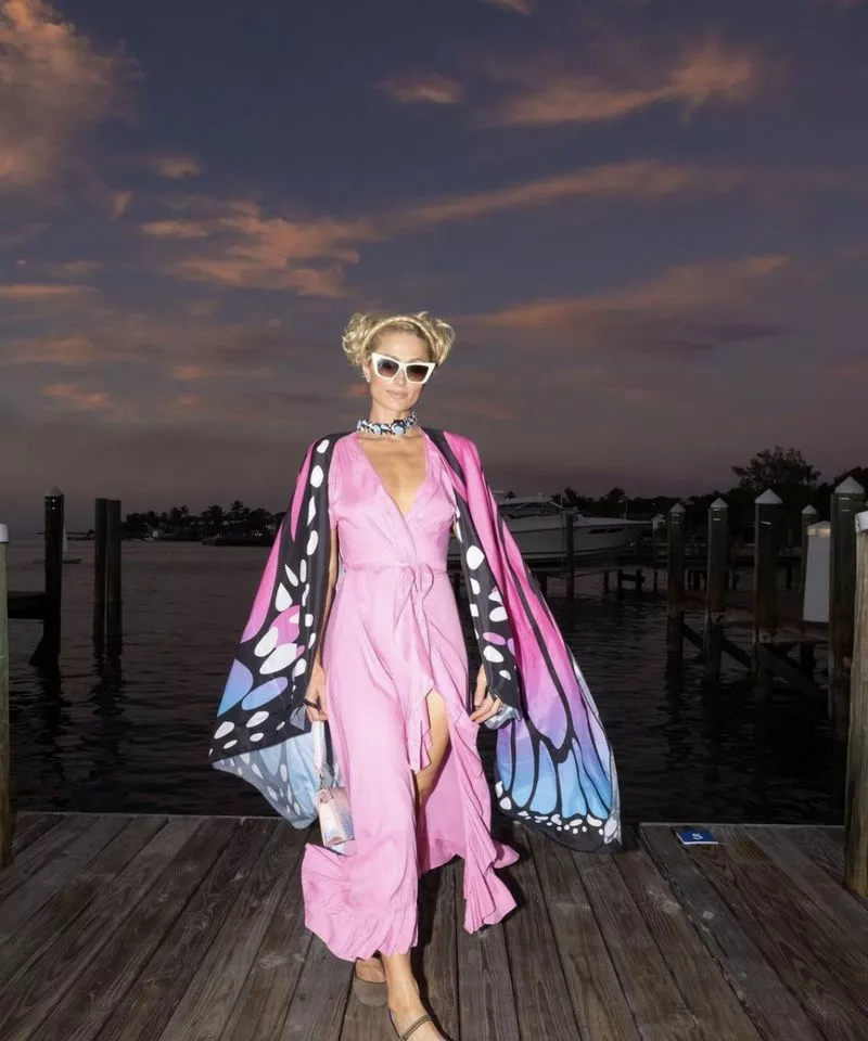 41-летняя бизнесвумен Пэрис Хилтон решила завершить год путешествием. Вместе со своим мужем Картером Реумом звезда отправилась на Багамы сразу после празднования Рождества в новом доме в Беверли Хиллс. На опубликованных в социальных сетях фото Пэрис позирует на набережной в розовом платье макси с разрезом на бедрах и крыльями бабочки. Реум выбрал более повседневный аутфит и надел темно-синюю рубашку-поло и бело-голубые шорты с принтом.