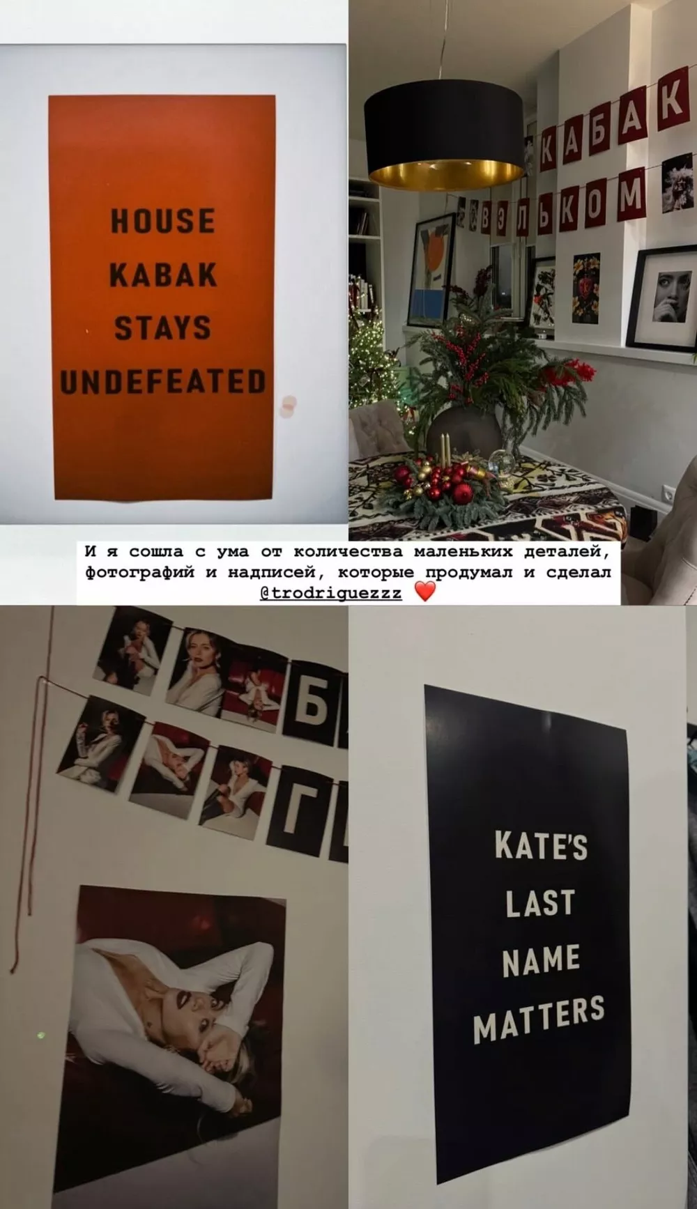 Гости, среди которых были Ассоль и ее супруг рэпер ST, ждали Кабак и Родригеза больше двух часов – те застряли в огромной предновогодней пробке. Едва услышав, как парочка заходит домой раздевается в прихожей, они с криками и хлопушками с конфетти выскочили из всех углов квартиры и принялись поздравлять Катю. Стоит ли говорить о том, что актриса была в шоке? Не сумев сдержать эмоций, она, смеясь, даже упала на пол.